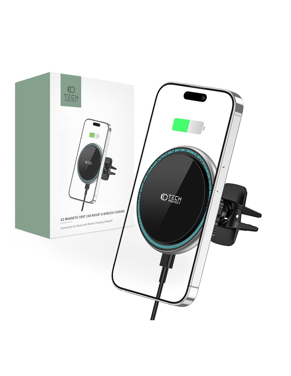 Uchwyt Samochodowy Na Telefon Z Ładowarką Indukcyjną MagSafe Tech-Protect A2 Czarny