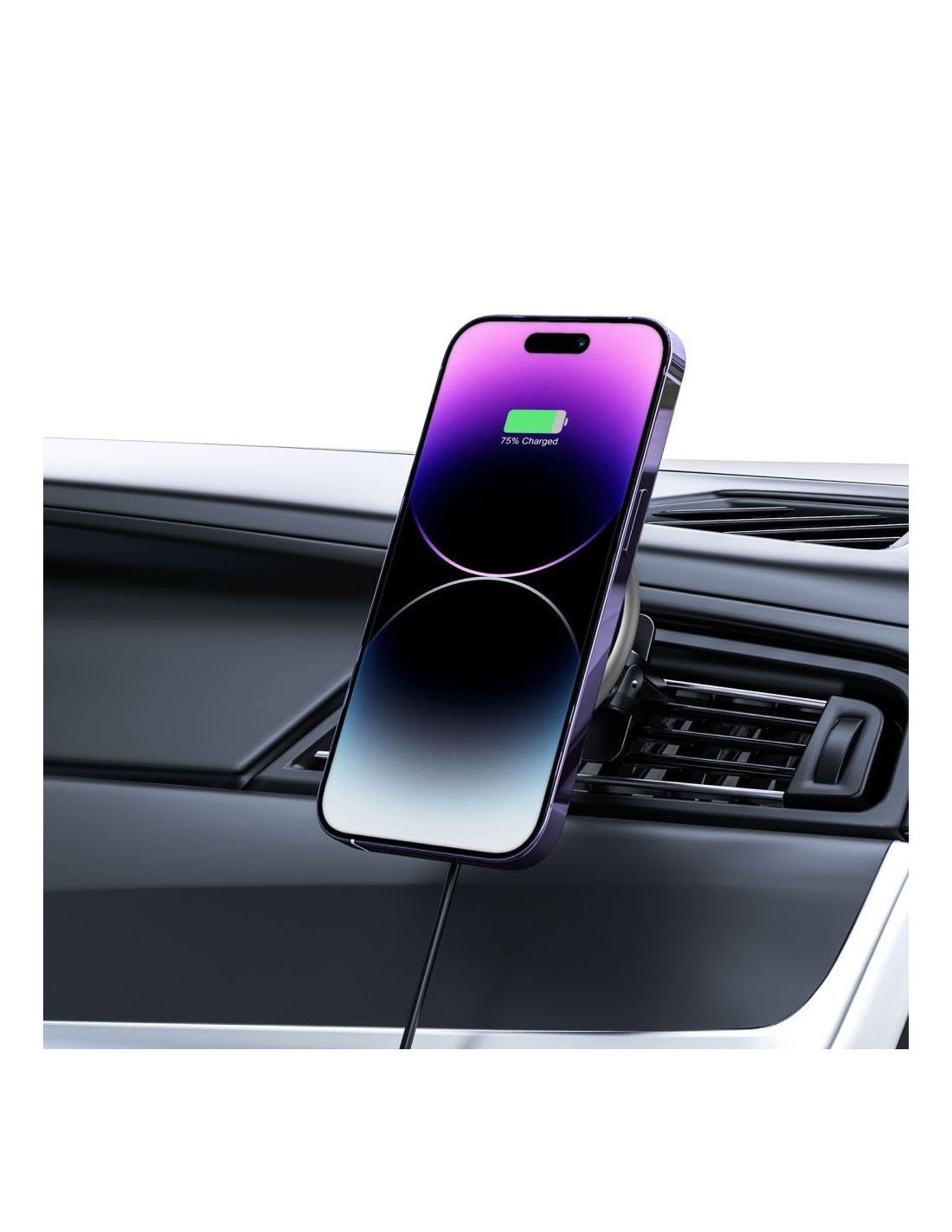 Designerski uchwyt samochodowy montowany do kratki nawiewu Tech-Protect A2, wyposażony w możliwość ładowania urządzań Apple z technologią Magsafe o maksymalnej mocy 15W.
