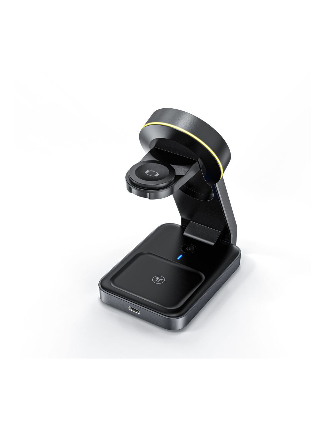 Tech-Protect QI15W-A28 to zaawansowana ładowarka 3w1, która oferuje wiele funkcji i wygodę użytkowania. Jedną z głównych zalet jest możliwość jednoczesnego zasilania trzech urządzeń. Dzięki temu możesz ładować swój smartfon z systemem MagSafe, zegarek Apple Watch oraz słuchawki z funkcją bezprzewodowego ładowania, na przykład Apple AirPods lub Samsung Galaxy Buds, równocześnie. Każde urządzenie ma dedykowany port ładujący, co oznacza, że możesz zasilać każde z nich niezależnie od siebie.