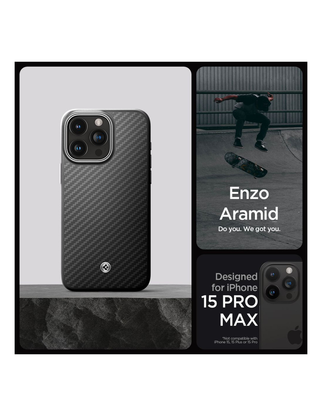 Etui Do iPhone 15 Pro Max Spigen Enzo Aramid Mag MagSafe Czarny Matowy