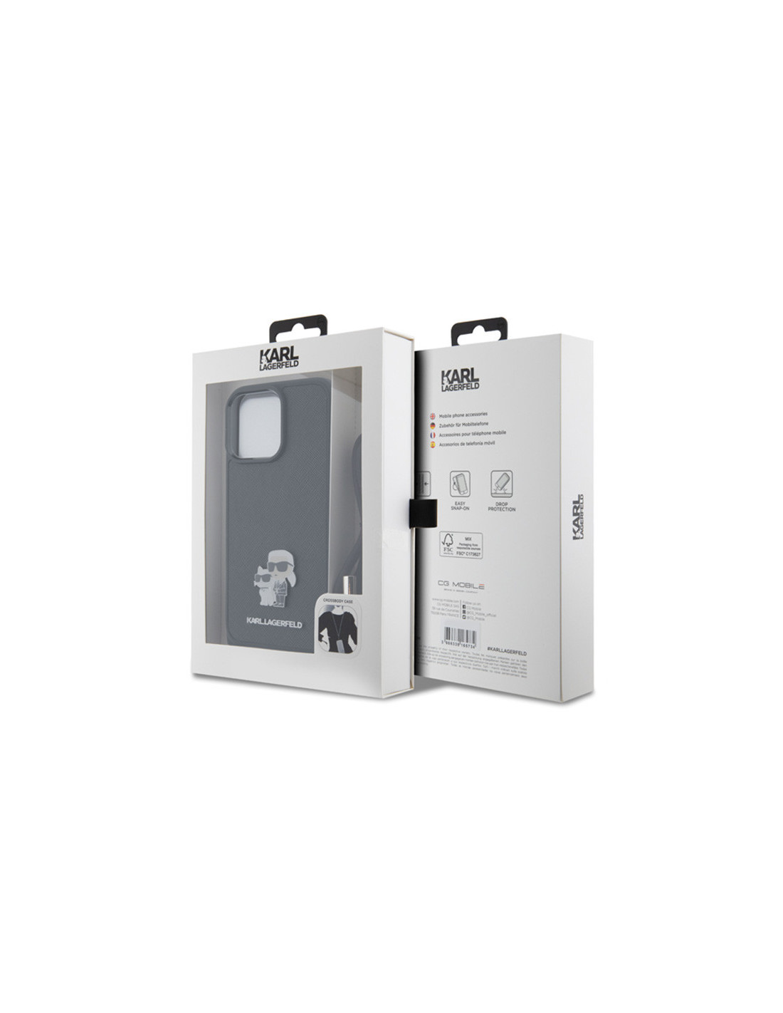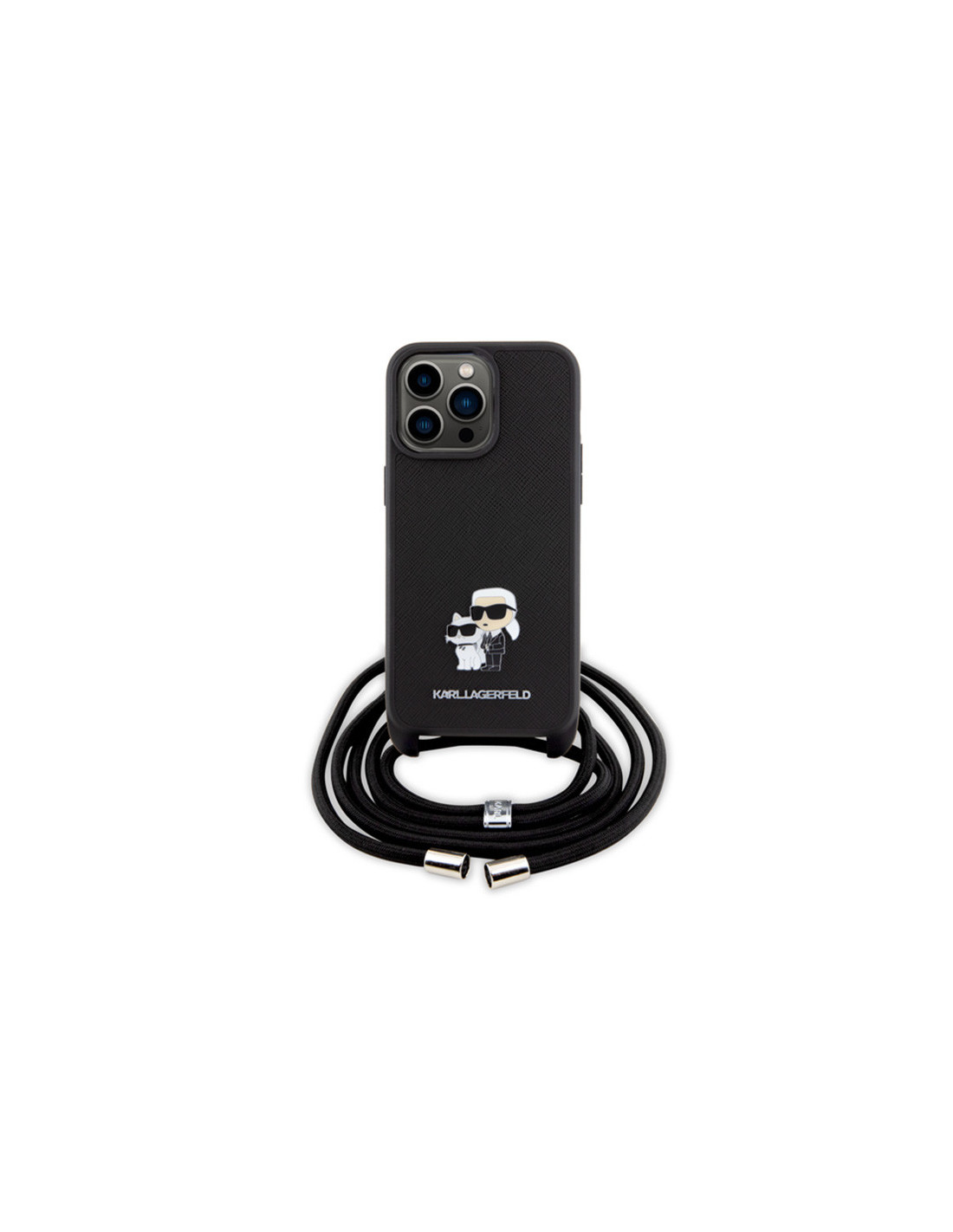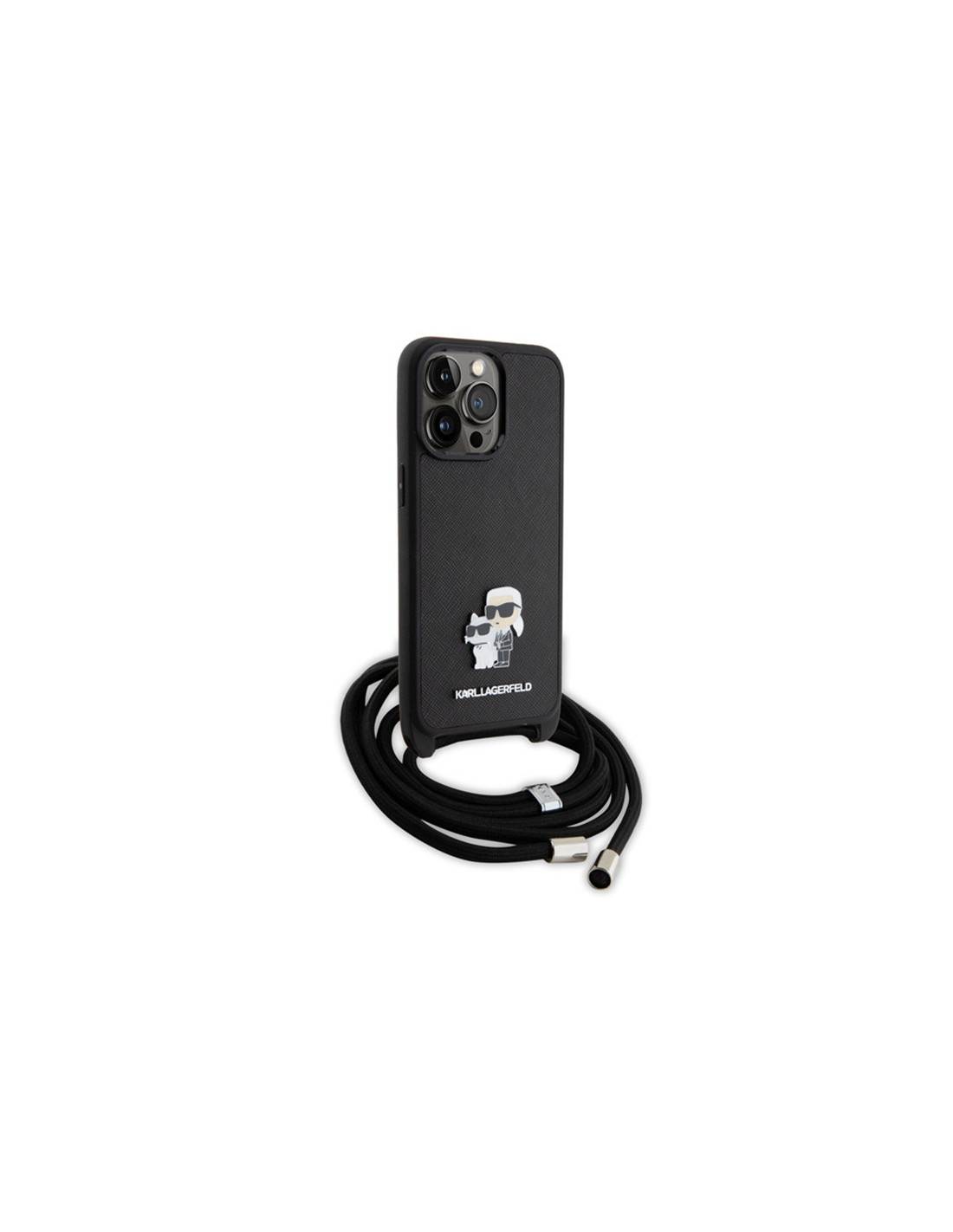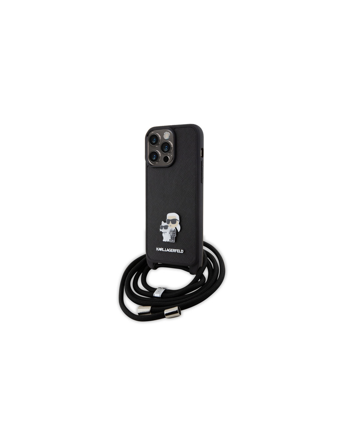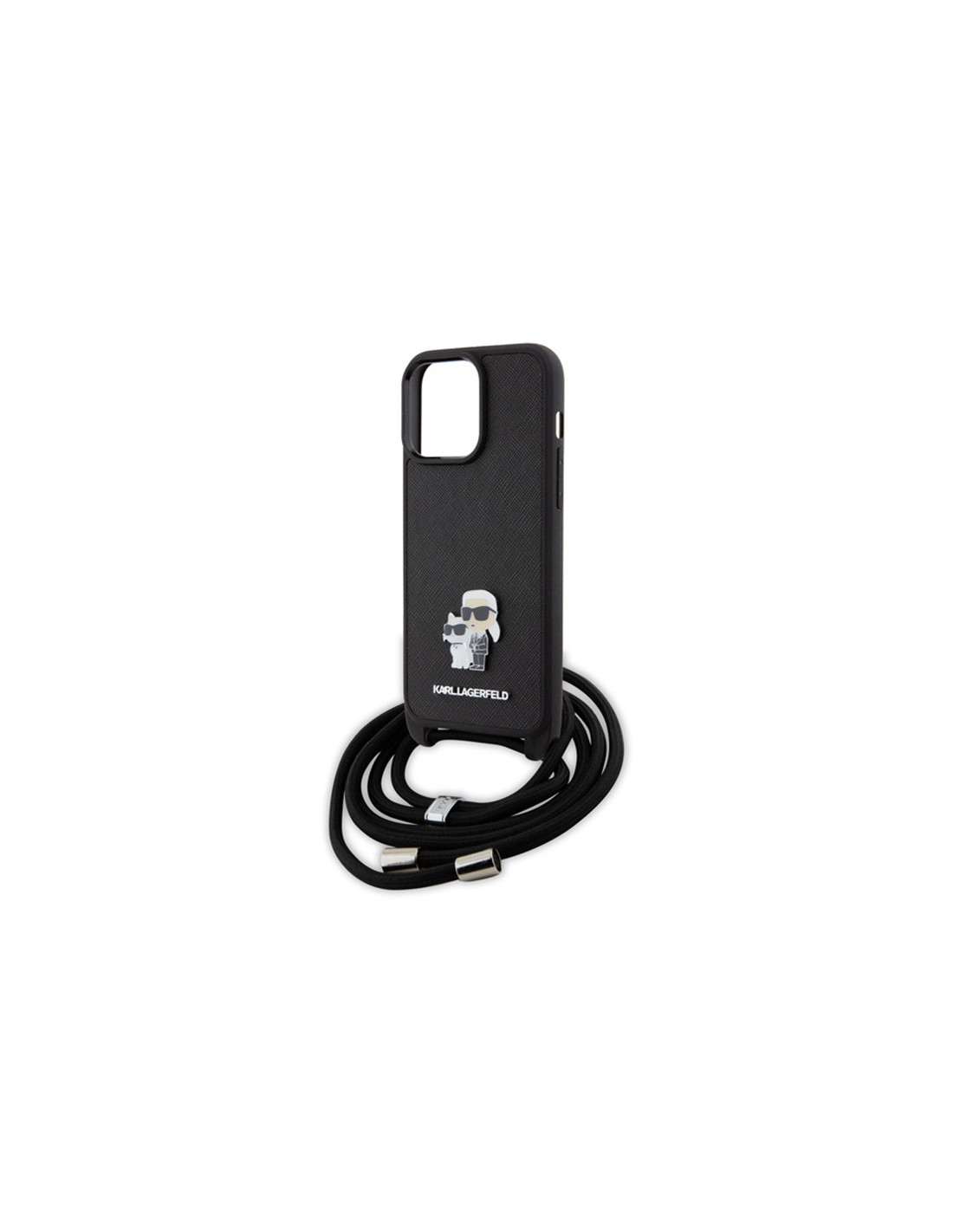 Etui Do iPhone 15 Pro Max Karl Lagerfeld Crossbody Saffiano Metal Pin Karl & Choupette Czarny