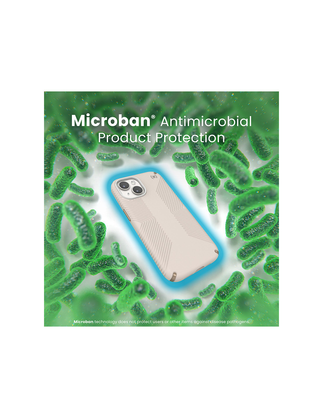 Oryginalna obudowa ochronna Speck z serii Presidio2 Grip oferuje też ochronę antybakteryjną MICROBAN® (światowy lider rozwiązań przeciwdrobnoustrojowych z szerokim portfolio ponad 25 zatwierdzonych technologii). Aktywny składnik wbudowany w strukturę etui powstrzymuje 99% bakterii, które gromadzą się na powierzchni etui. Technologia MICROBAN® zapewnia w ten sposób dożywotnią ochronę przed bakteriami powodującymi plamy i nieprzyjemne zapachy oraz działa na poziomie komórkowych, aby utrzymać czystość obudowy.