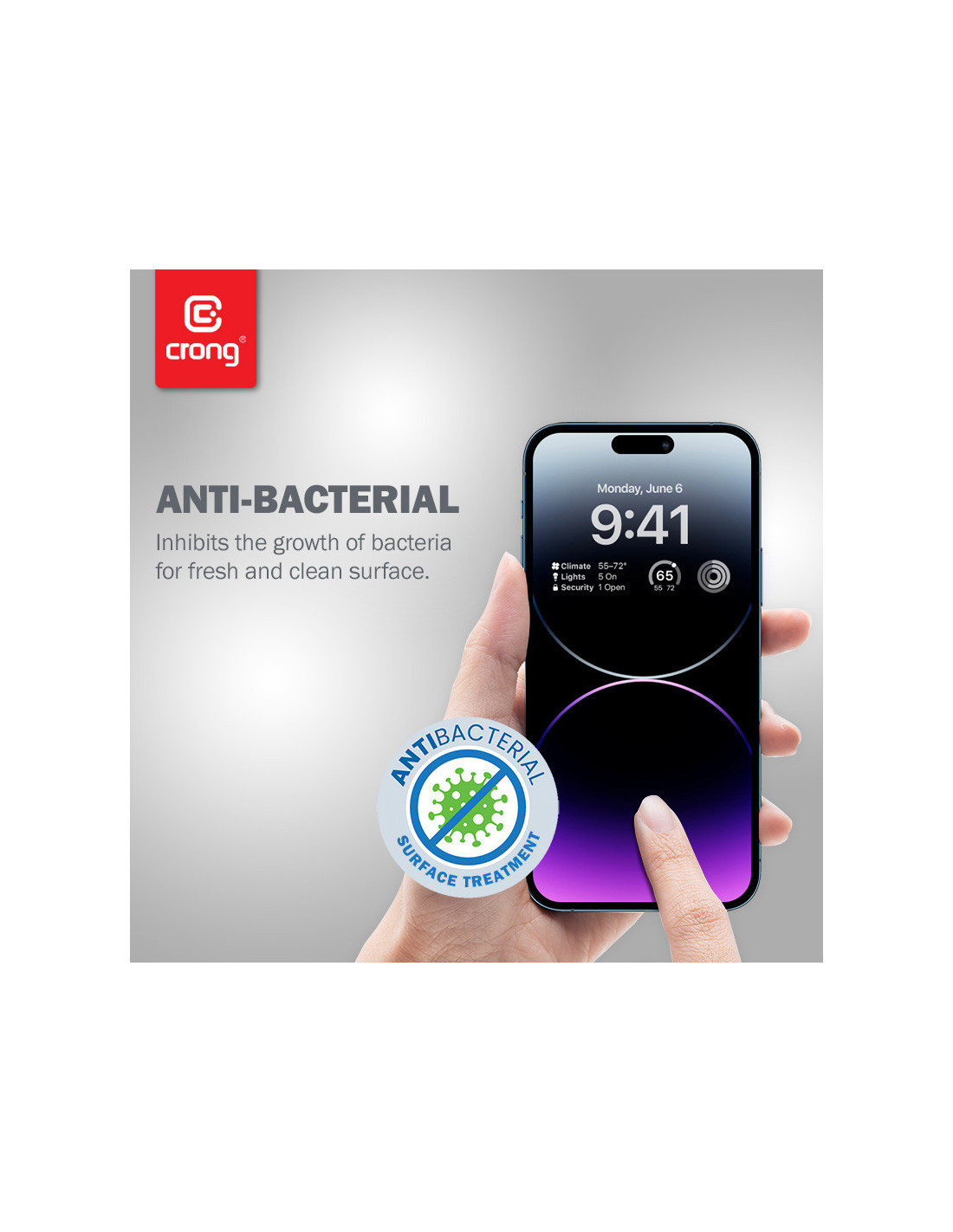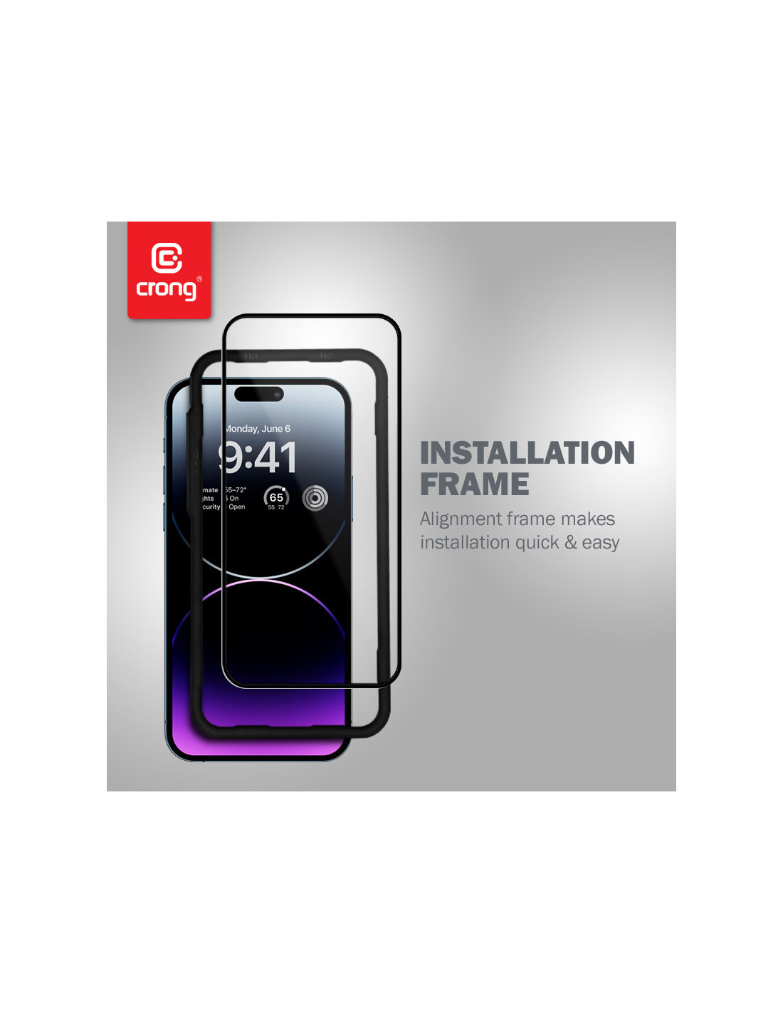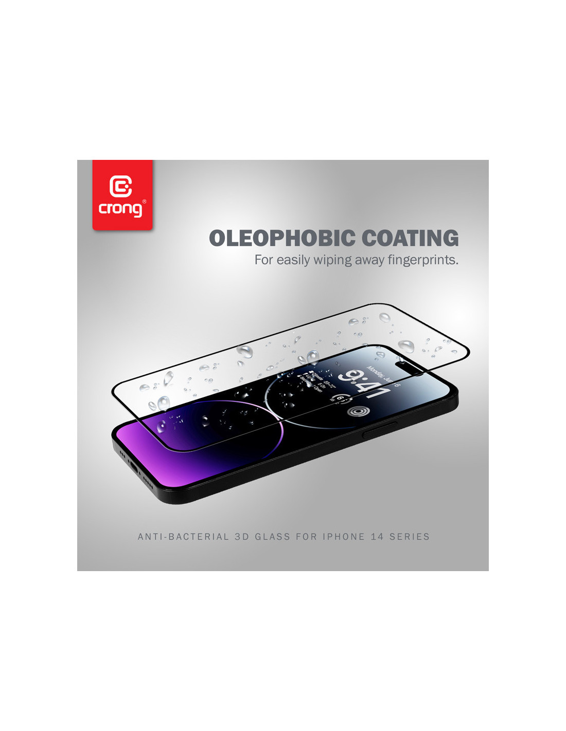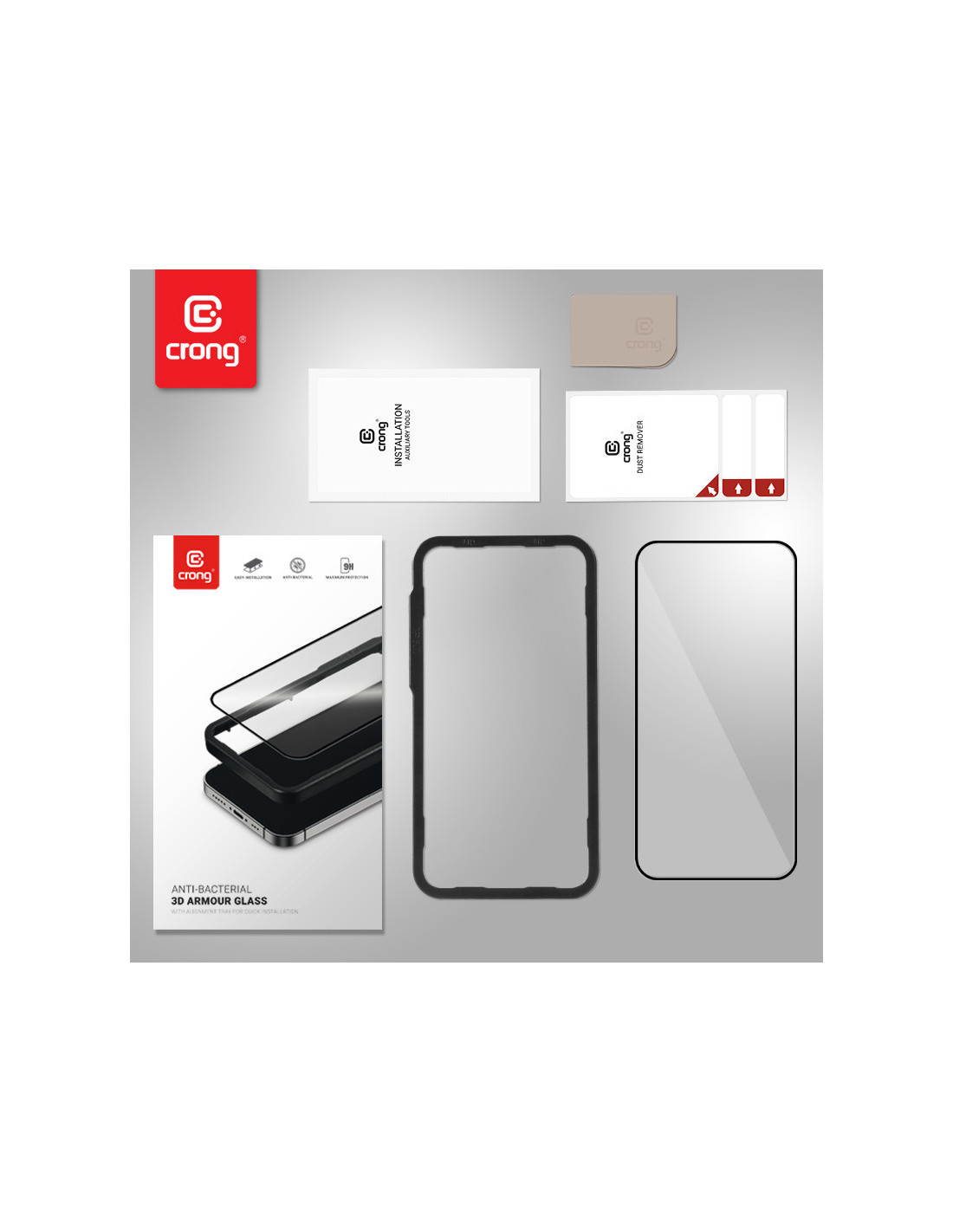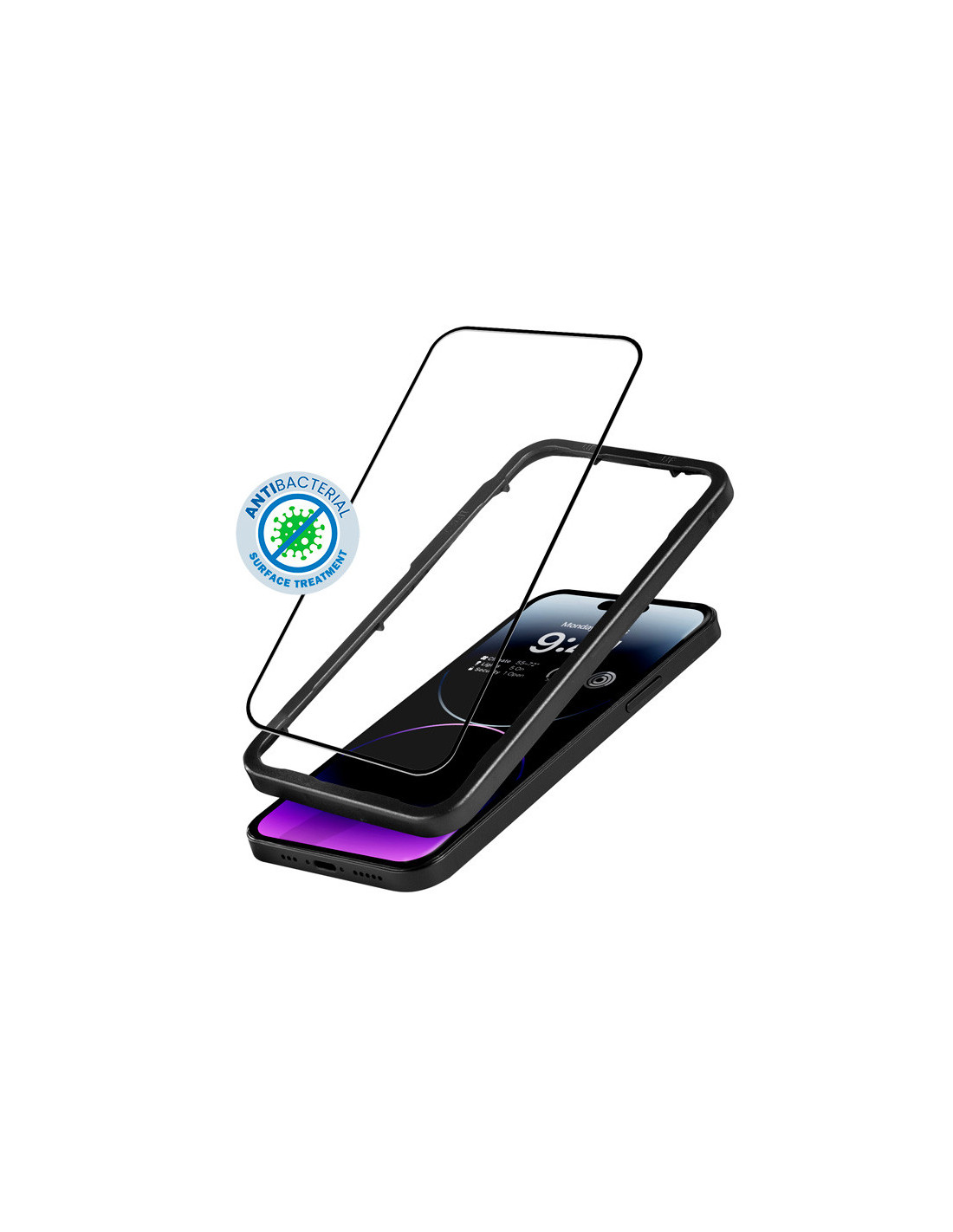 Szkło Hartowane 9H Na Cały Ekran iPhone 14 Pro Max + Ramka Instalacyjna Crong Anti-Bacterial 3D Armour Glass