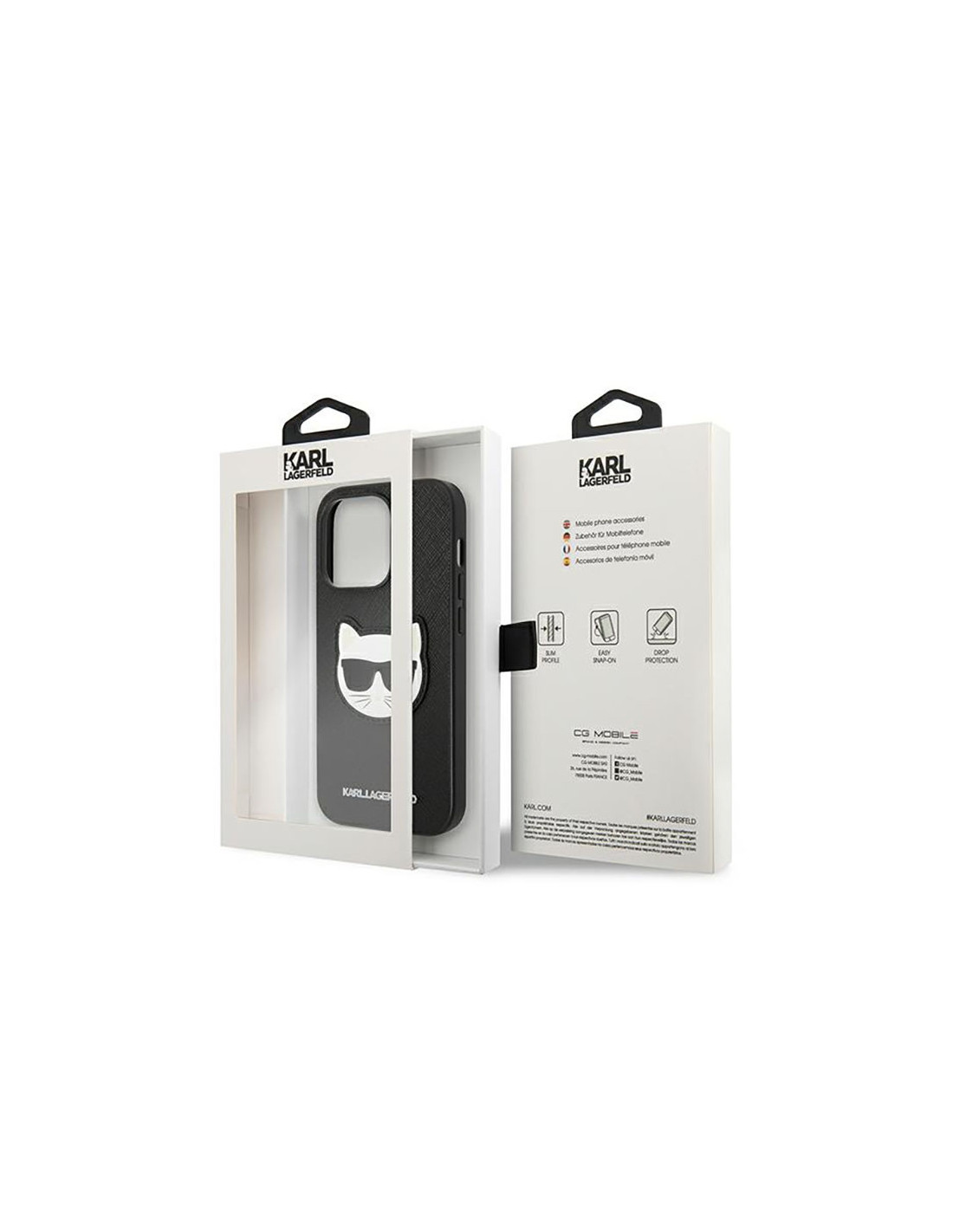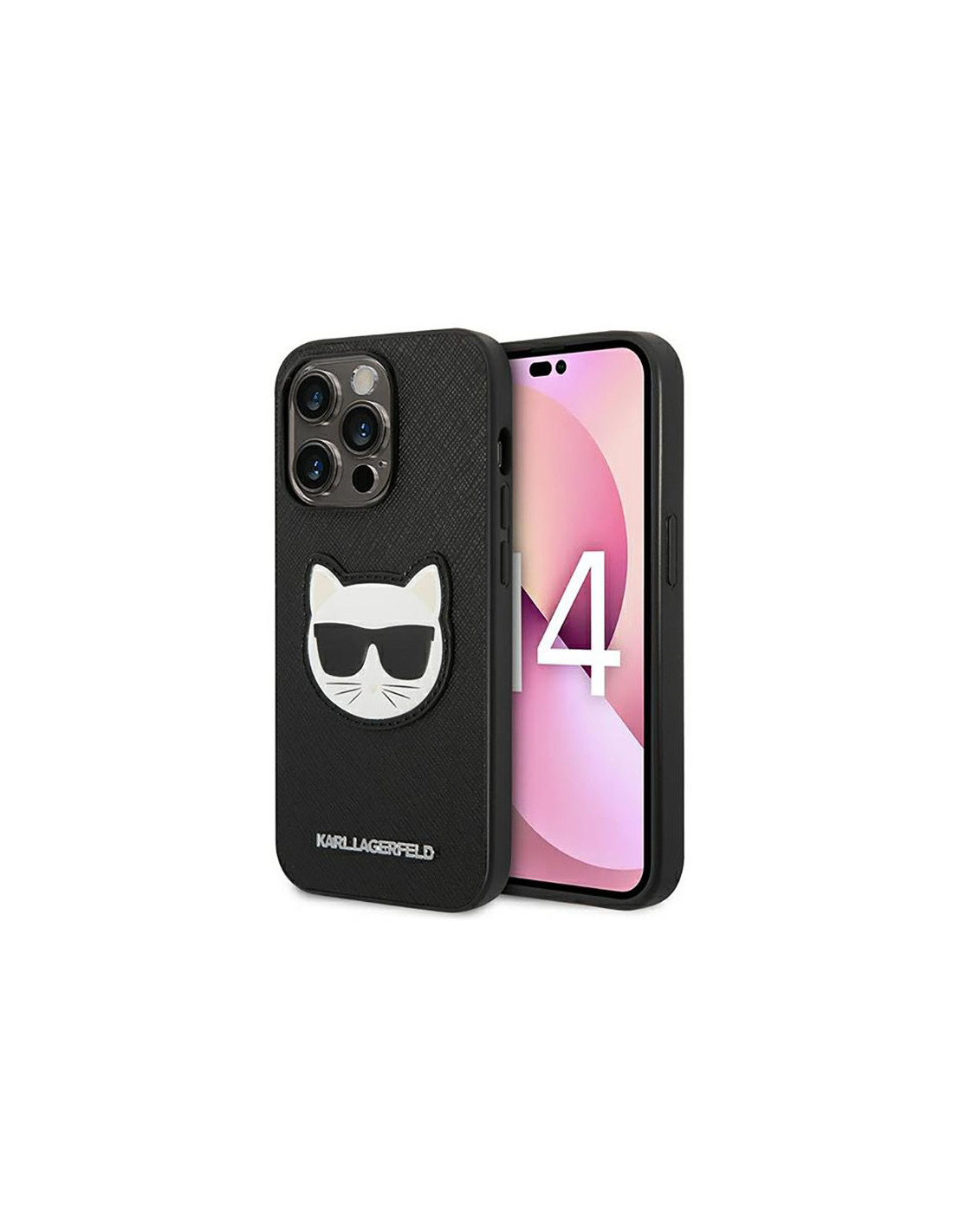 Etui Do iPhone 14 Pro Max Karl Lagerfeld Saffiano Choupette Head Patch Case Czarny