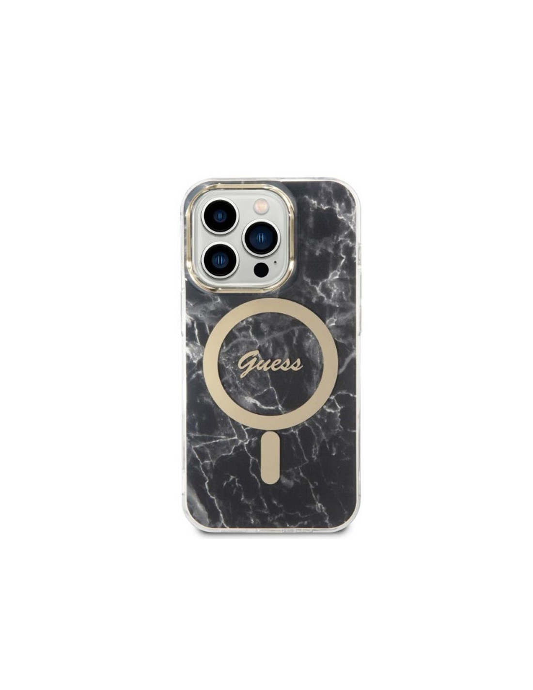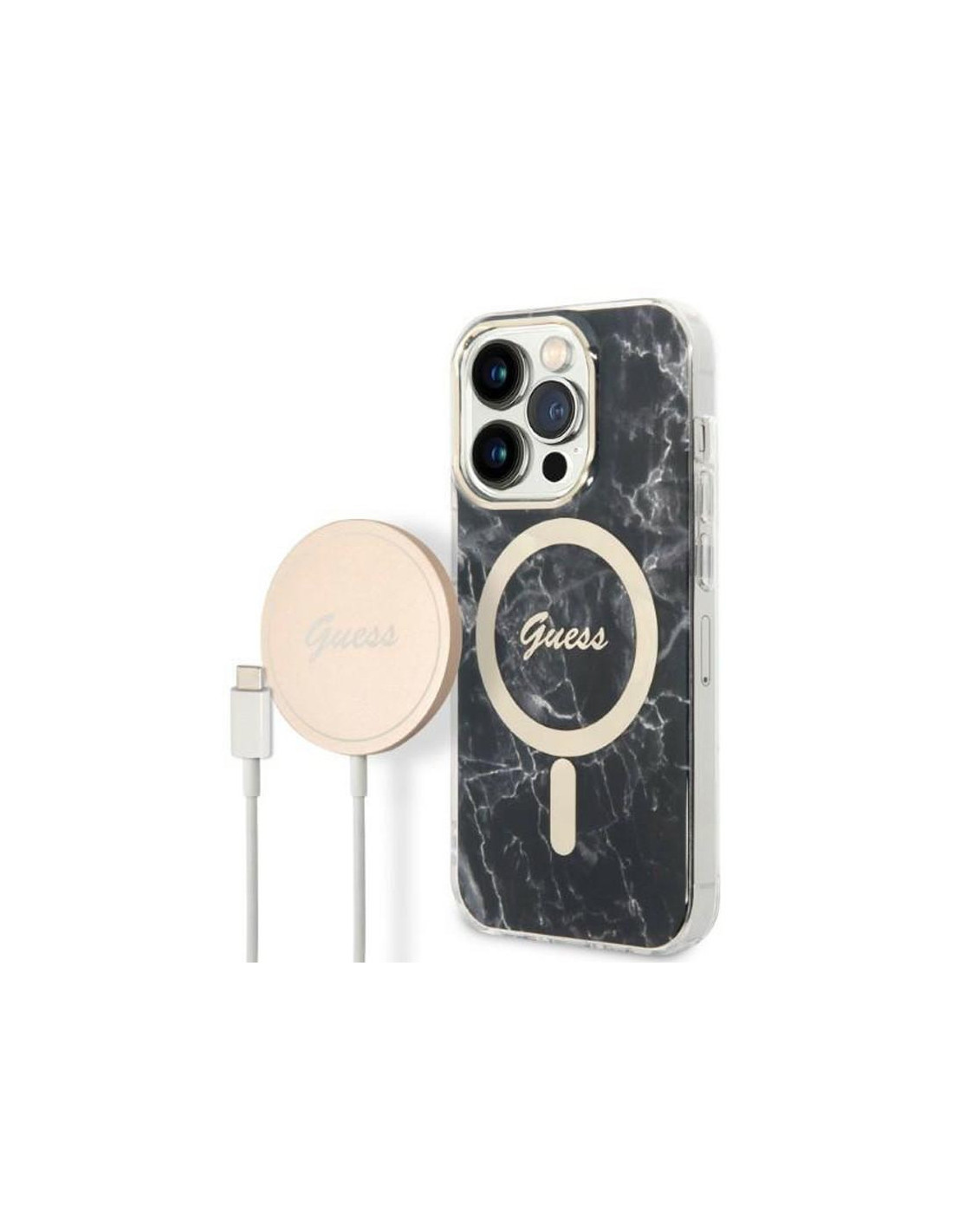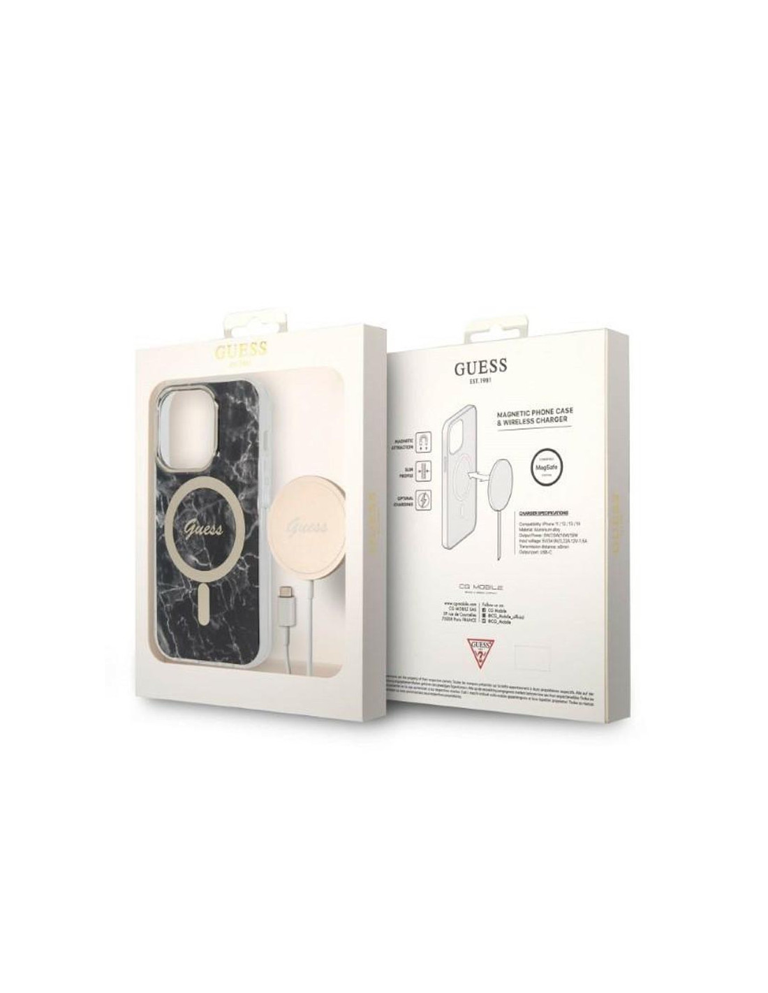 Zestaw Etui + Ładowarka MagSafe Do iPhone 14 Pro Max Guess Bundle Pack MagSafe Iml Marble Czarny