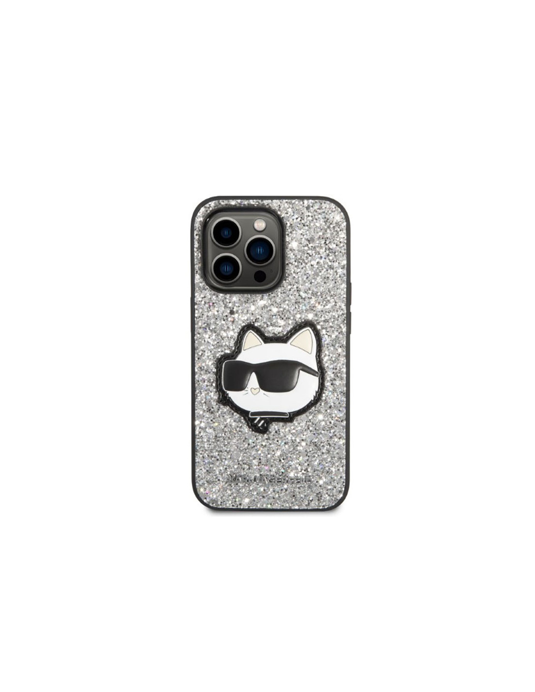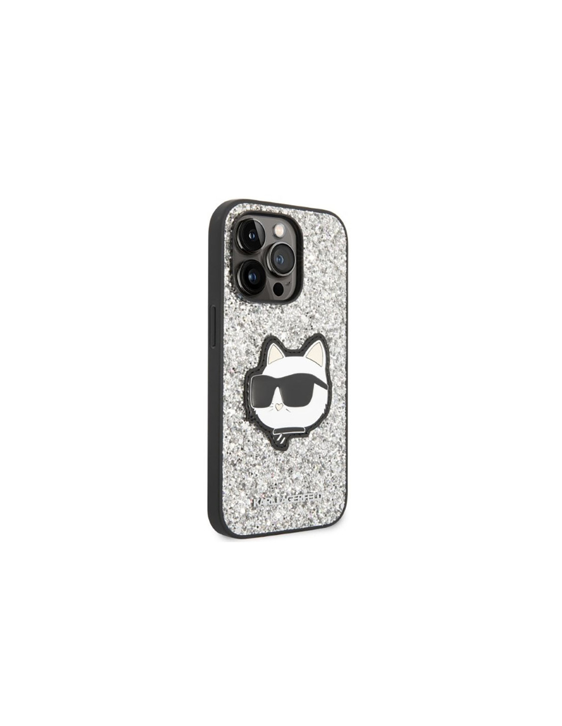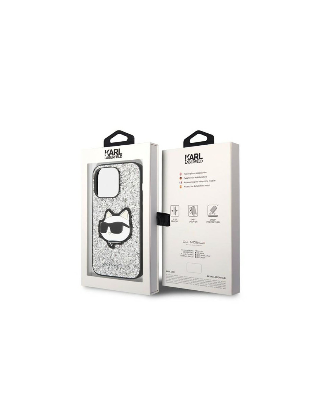 Etui Do iPhone 14 Pro Max Karl Lagerfeld NFT Glitter Choupette Patch Srebrny
