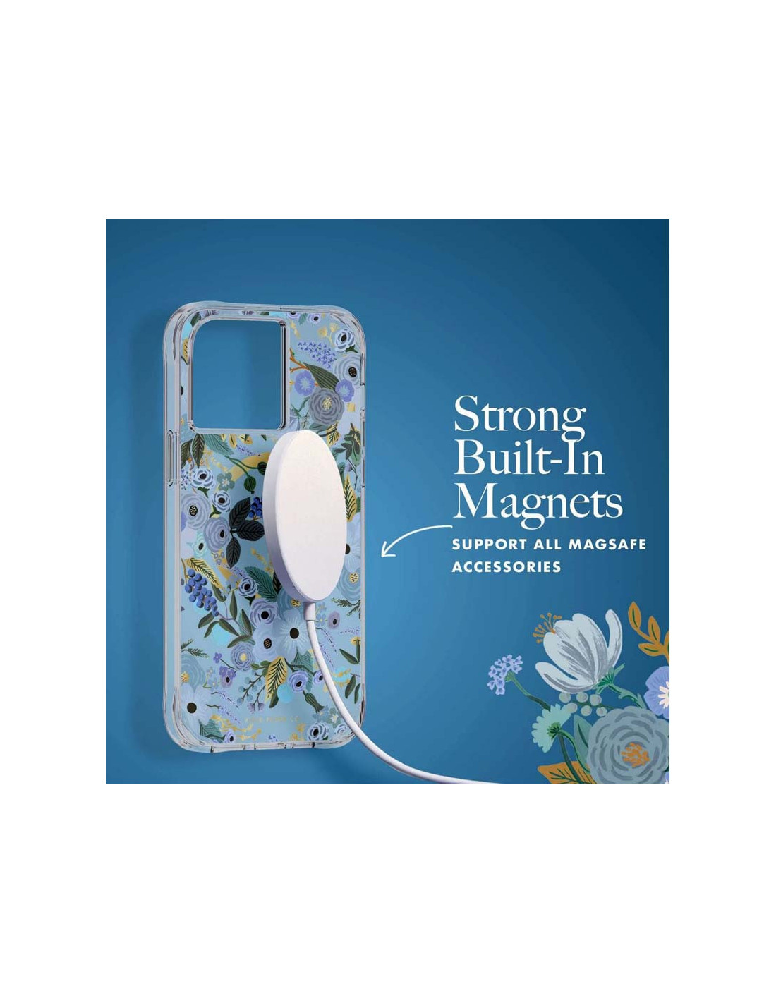 Designerskie etui do iPhone’a 14 Pro Max z oryginalną grafiką Rifle Paper z akcentami złotej folii. Wbudowane magnesy sprawiają, że ładowarka MagSafe dopasowuje się za każdym razem precyzyjnie. Powierzchnia etui została ponadto zabezpieczona przed bakteriami, dzięki czemu pozostaje ono cały czas czyste, nie żółknie i jest przyjemne w użytkowaniu.
