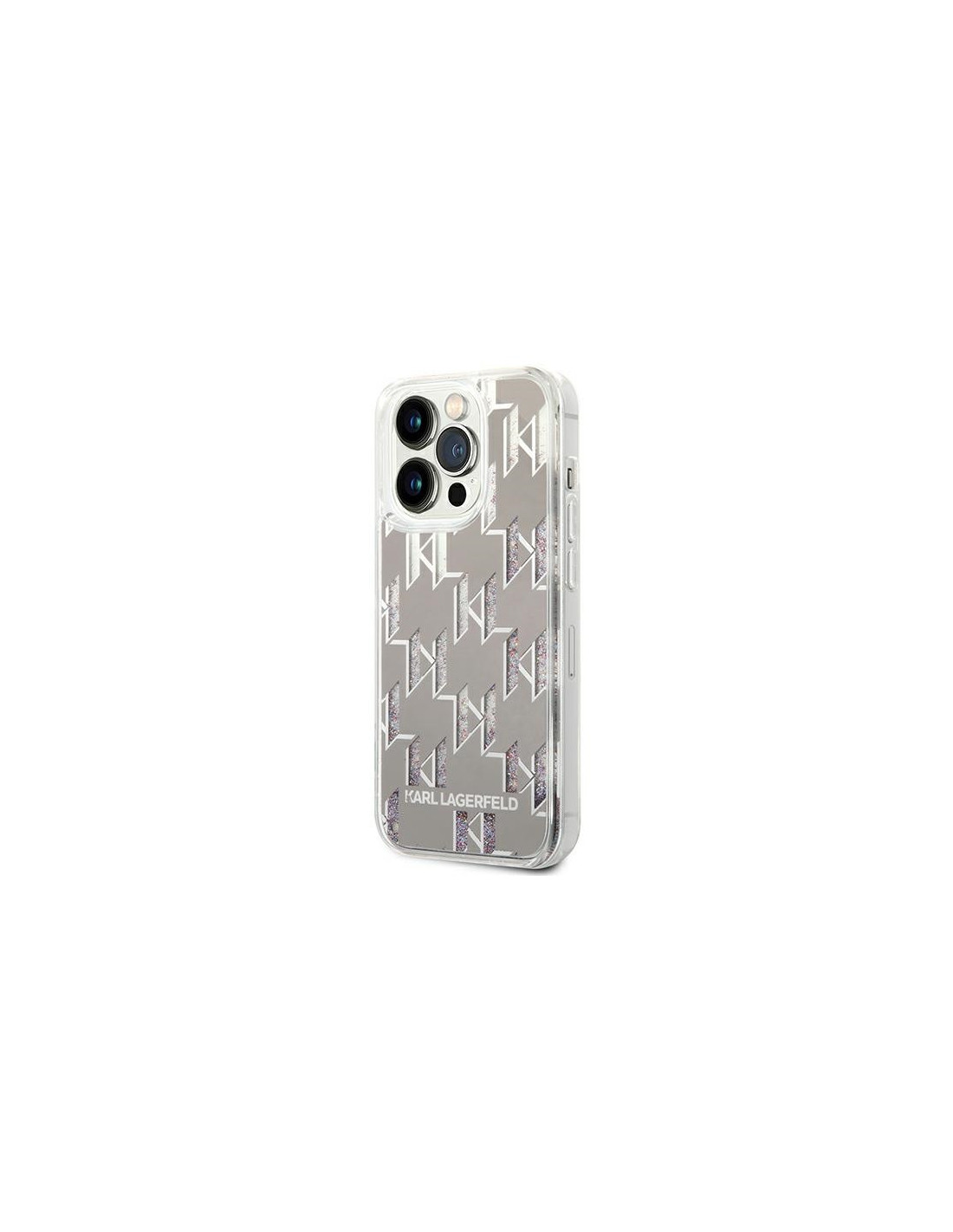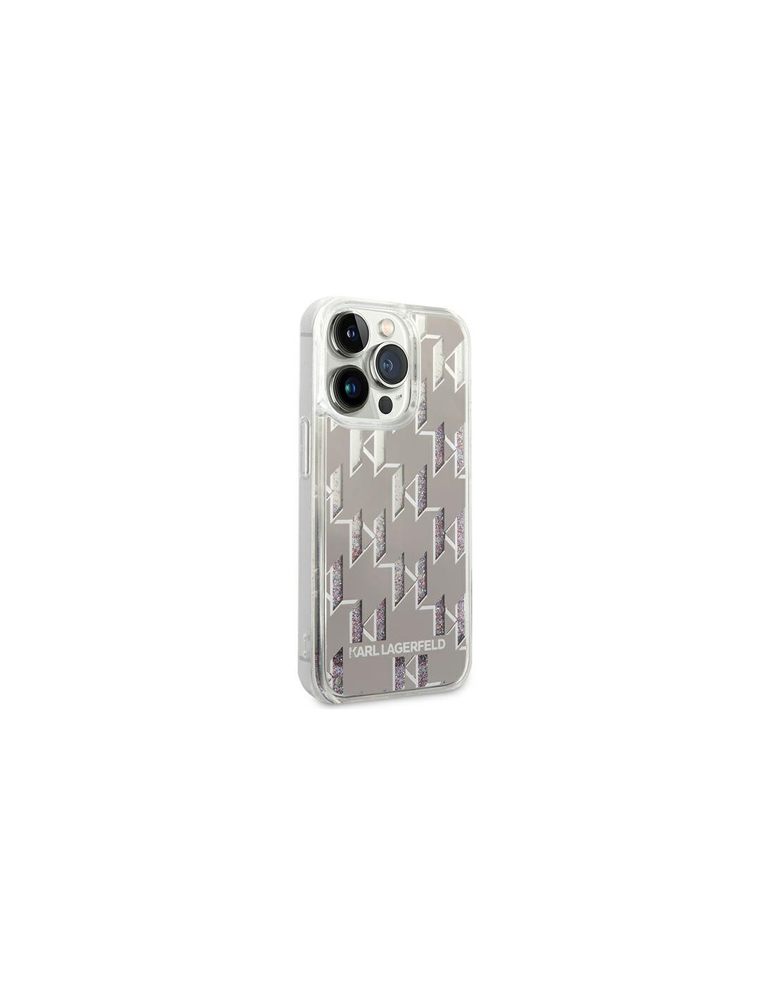 Etui Do iPhone 14 Pro Max Karl Lagerfeld Monogram Liquid Glitter Srebrny