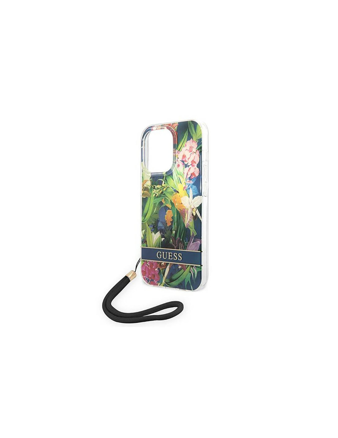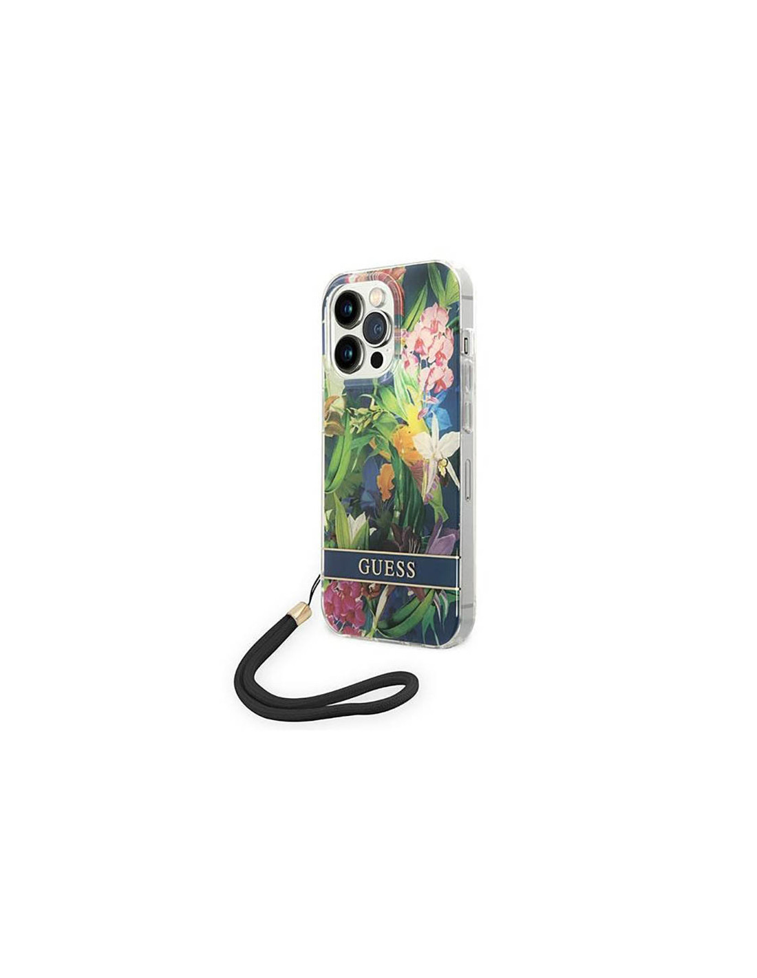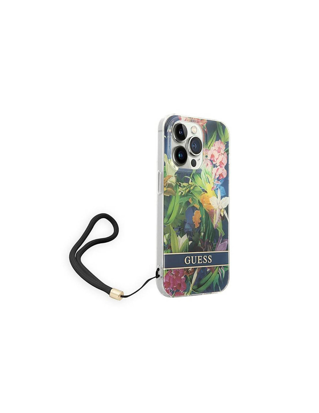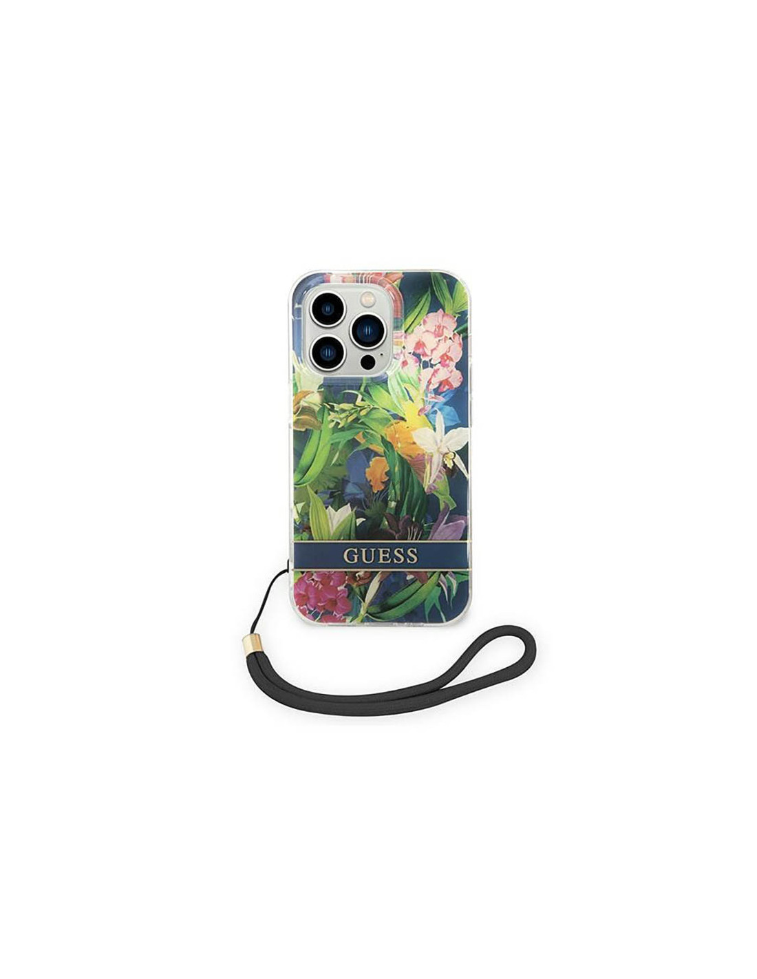 Etui Ze Smyczką Do iPhone 14 Pro Max Guess Flower Cord Niebieski