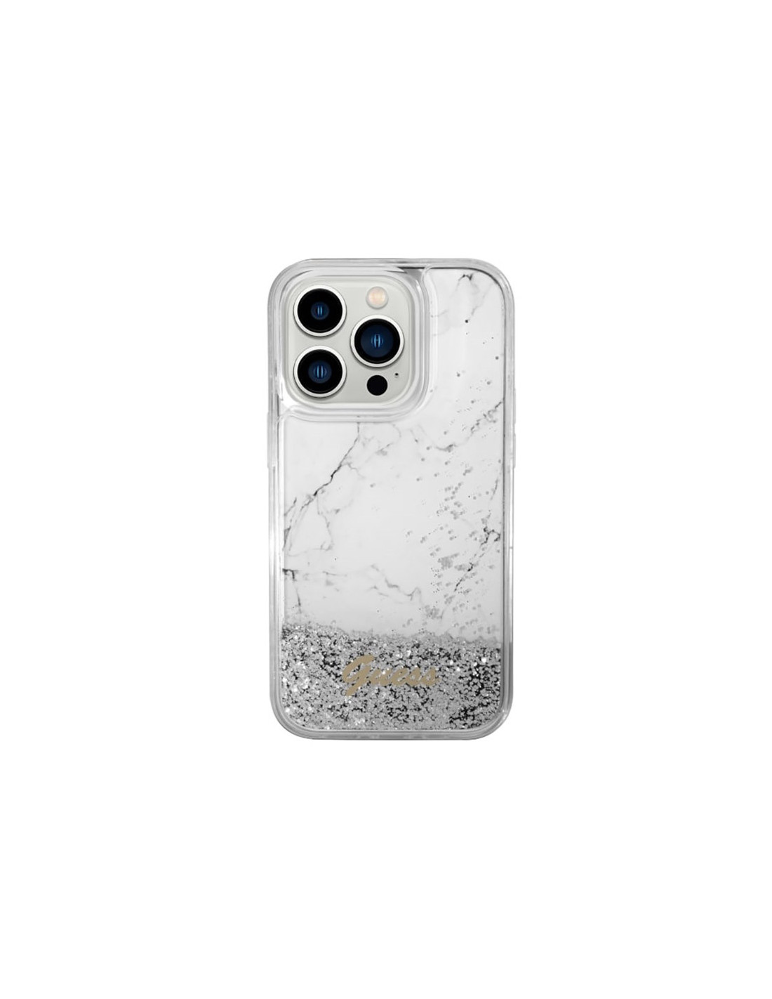 Etui Do iPhone 14 Pro Max Guess Liquid Glitter Marble Biały
