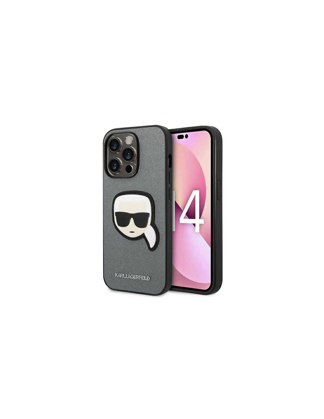 Etui Do iPhone 14 Pro Karl Lagerfeld Saffiano Karl Head Patch Case Srebrny