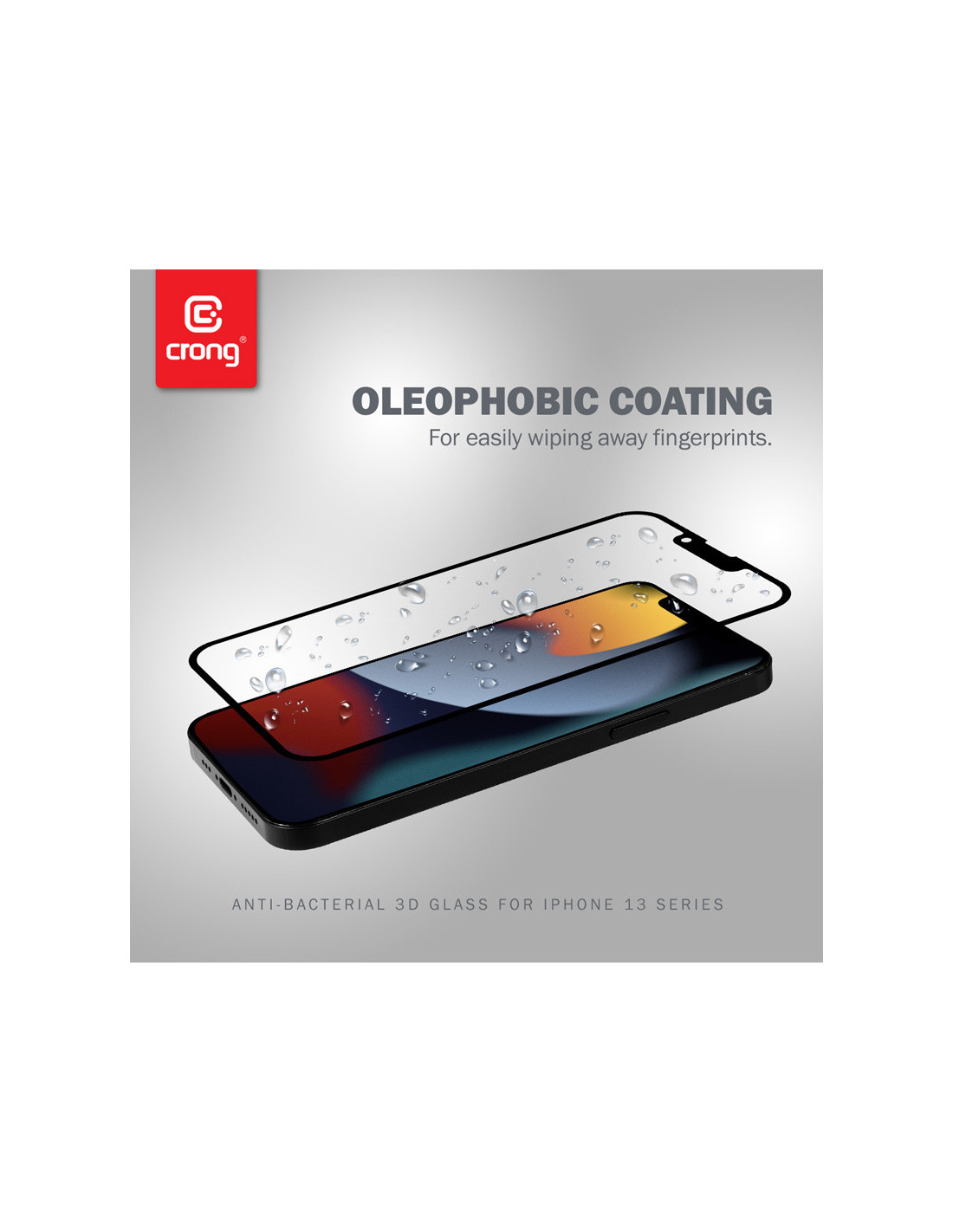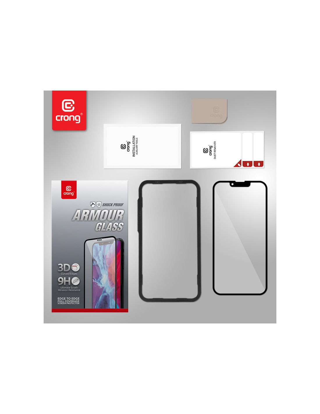 Szkło Hartowane 9H Na Cały Ekran iPhone 14 Plus / iPhone 13 Pro Max + Ramka Instalacyjna Crong Anti-Bacterial 3D Armour Glass