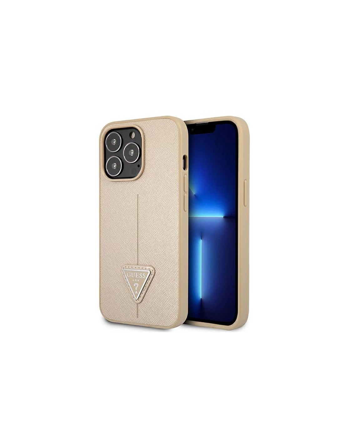 Etui Do iPhone 14 Pro Guess Saffiano Triangle Logo Case Beżowy