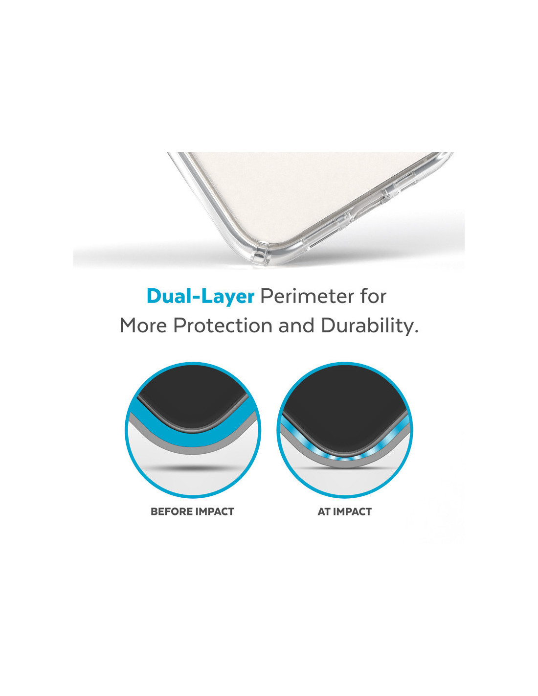 Konstrukcja etui wykonana została w technologii IMPACTIUM™ Shock Barrier, która chroni telefon przed uszkodzeniami podczas upadku z wysokości prawie 4 m. To wszystko dzięki dwóm warstwom: zewnętrznej, która rozprasza siłę uderzenia oraz wewnętrznej IMPACTIUM™, absorbującej wstrząs.