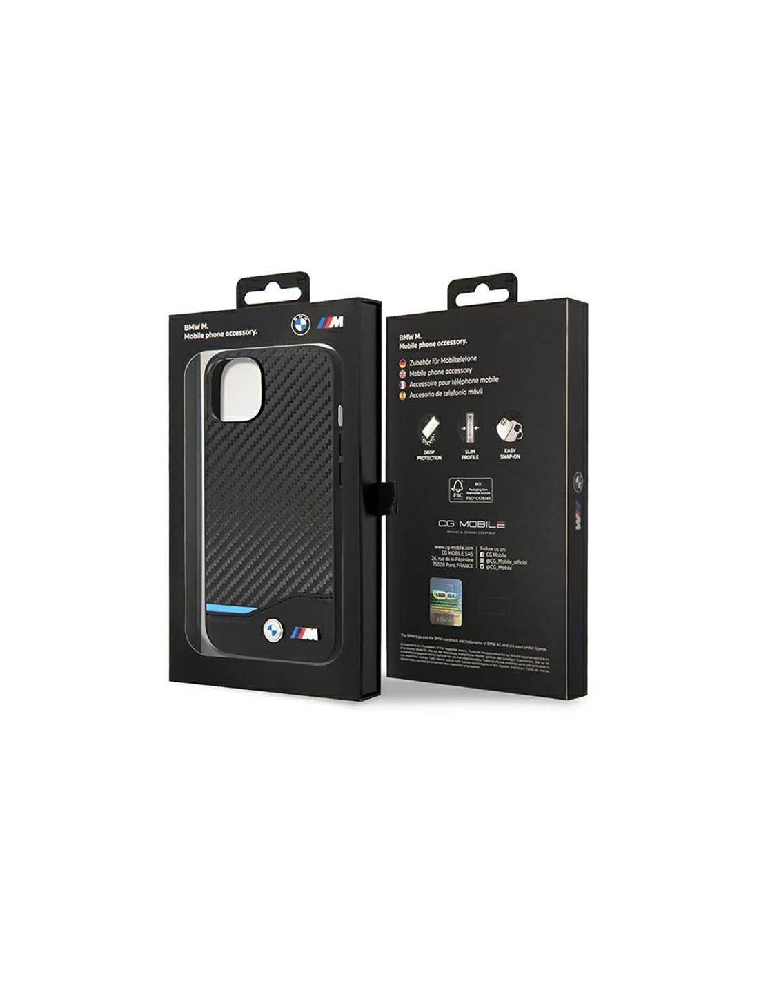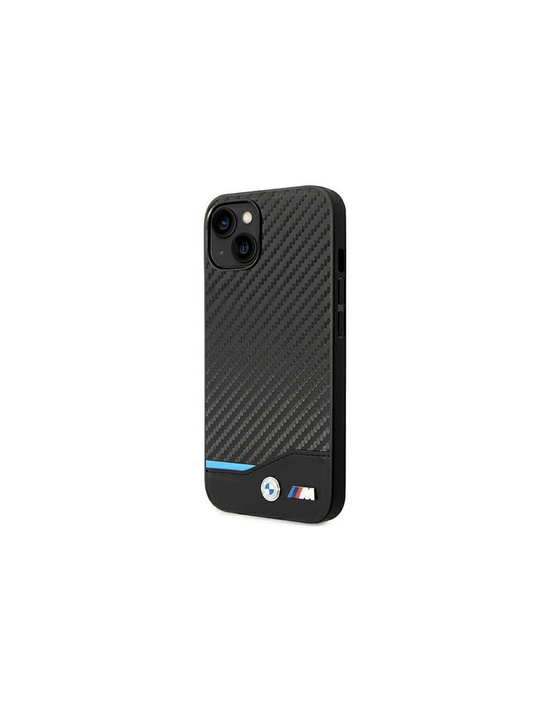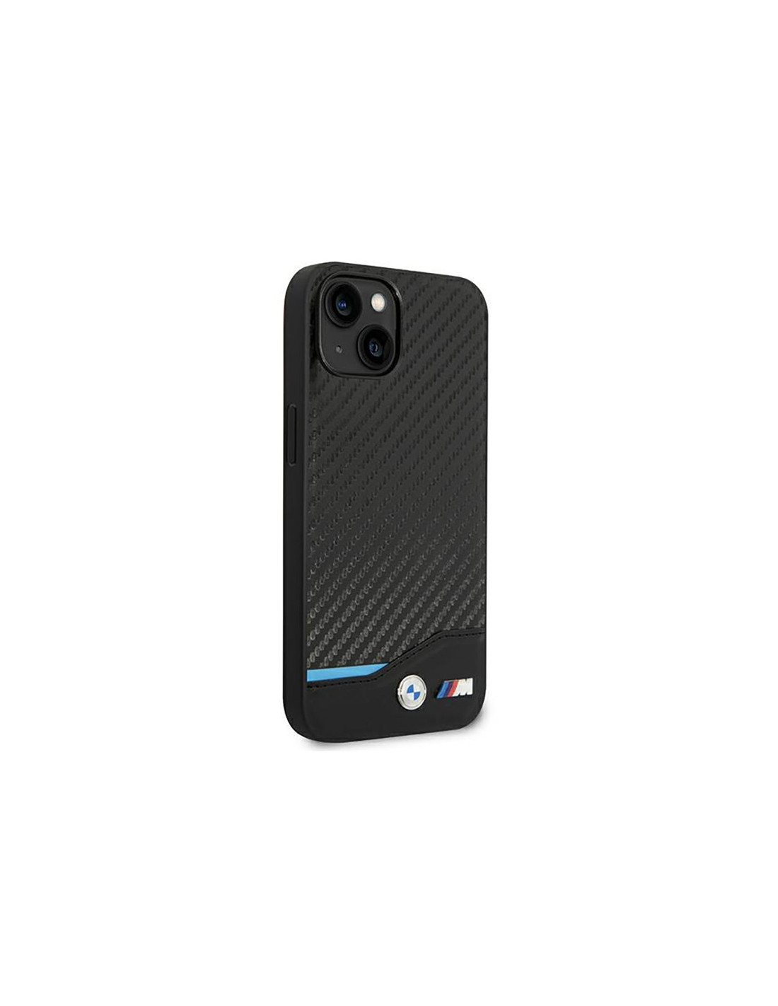 Etui Do iPhone 14 Plus BMW Leather Carbon Blue Line Czarny