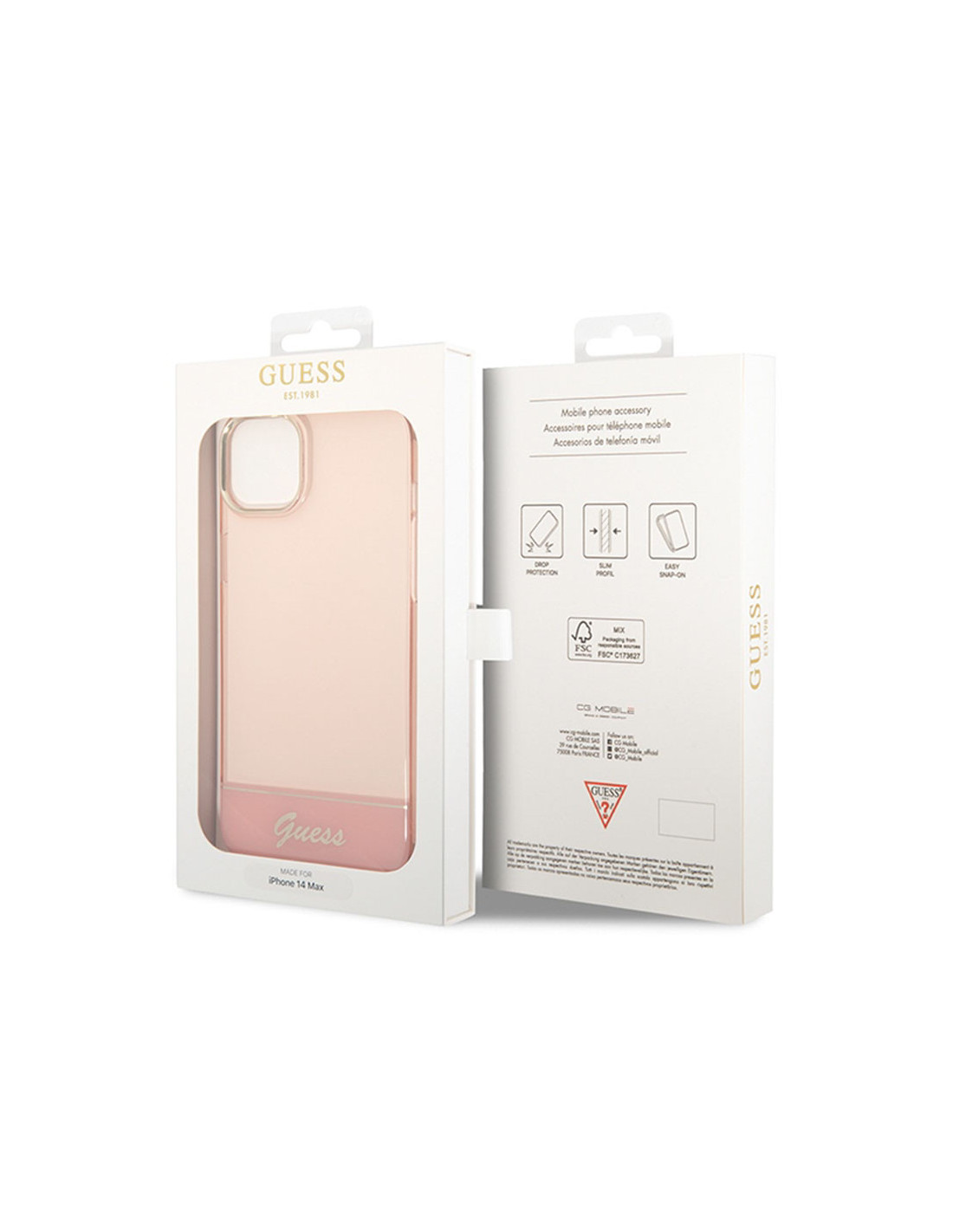 Guess Translucent to przezroczyste etui wykonane z wytrzymałego TPU i poliwęglanu przeznaczone do ochrony smartfona. Obudowa wykończona jest paskiem z logo Guess w stylu vintage. Zapewnia swobodny dostępny do wszystkich klawiszy funkcyjnych, gniazd i portów telefonu, nie ograniczając jego funkcjonalności, dzięki czemu można w pełni korzystać ze swojego smartfona.