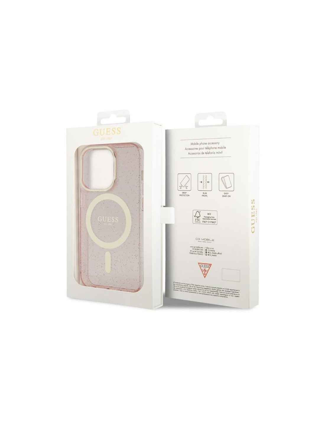 Etui Do iPhone 14 Pro Guess Glitter Gold MagSafe Różowy