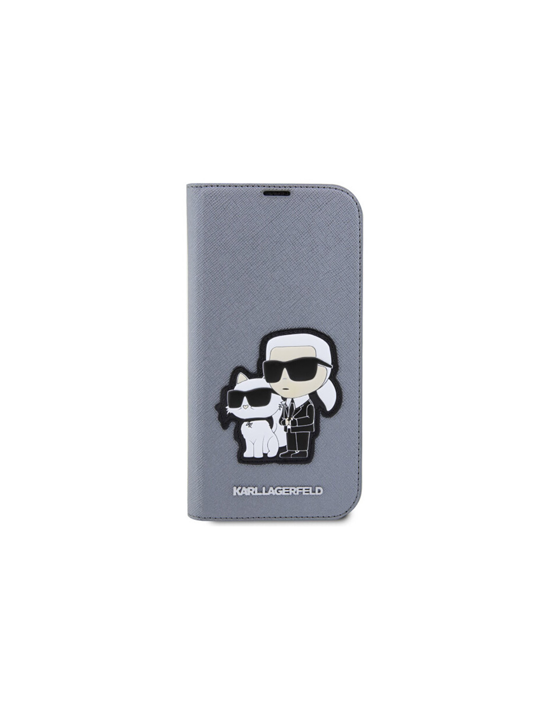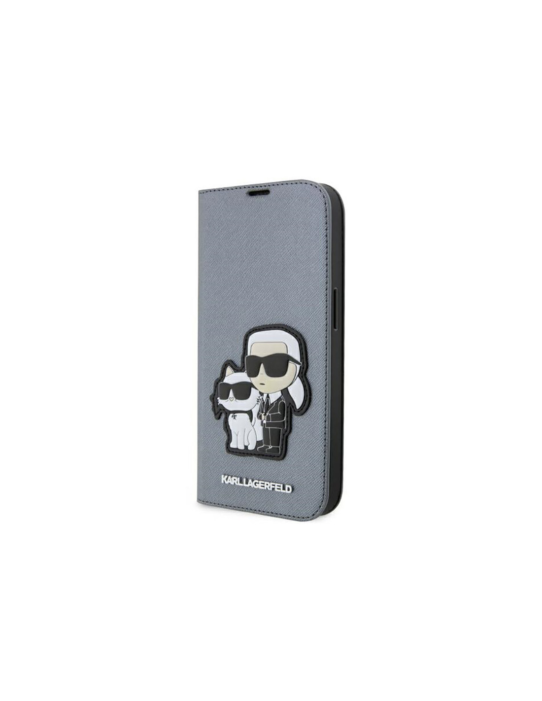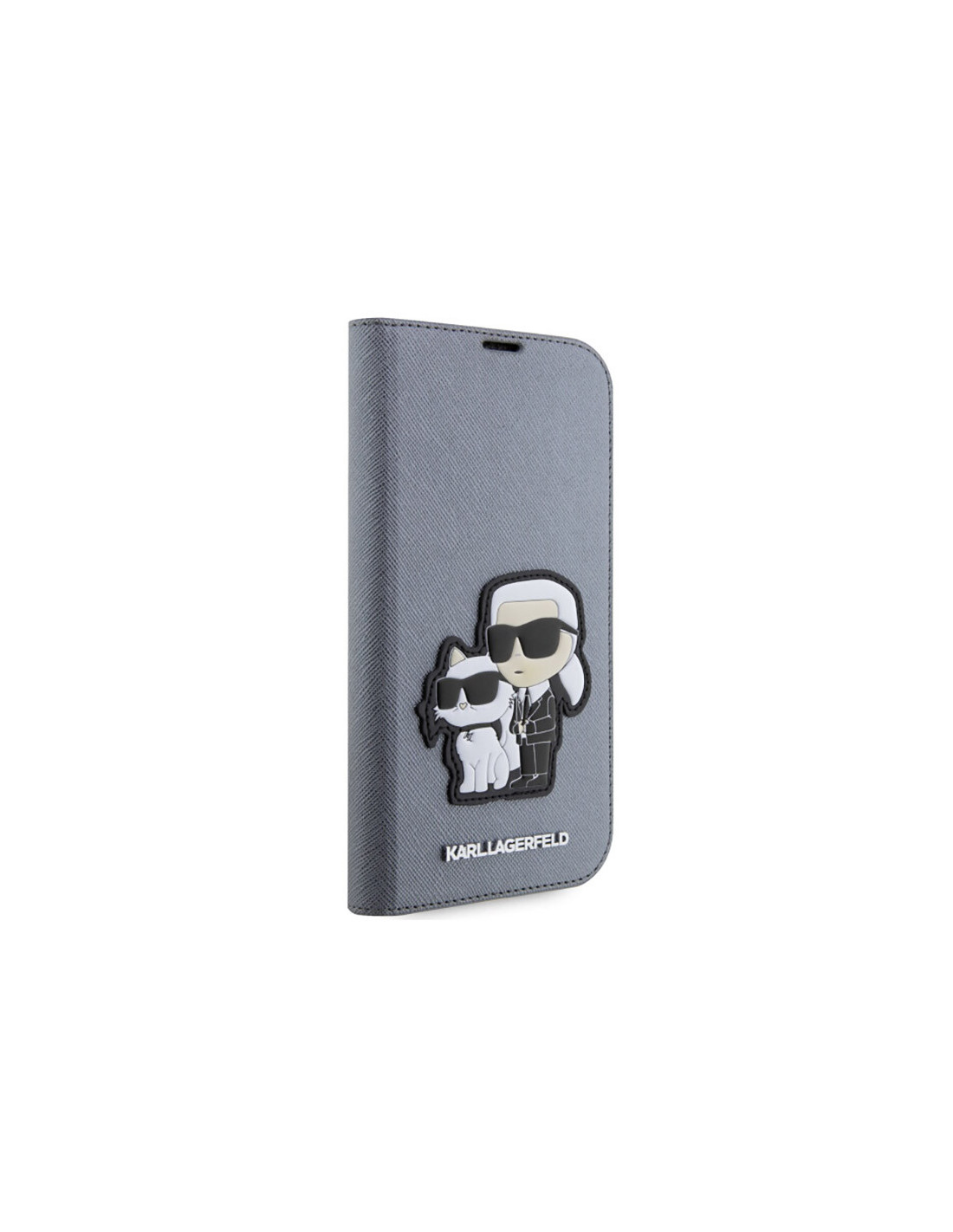 Etui Do iPhone 14 Pro Karl Lagerfeld Booktype NFT Saffiano Karl & Choupette Srebrny