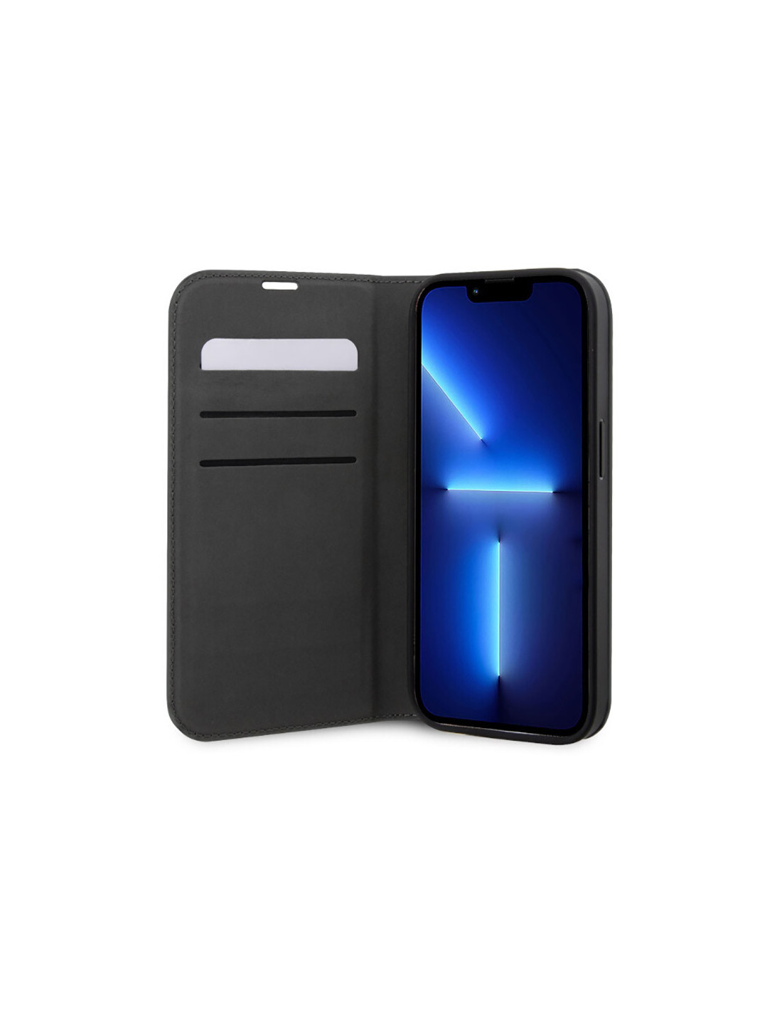 Etui posiada trzy wewnętrzne kieszenie na karty płatnicze, prawo jazdy czy dowód osobisty. Składana klapka umożliwia stawić smartfon w poziomie i np. oglądać filmy czy surfować w internecie. Magnetyczne zamknięcie klapki zapobiega przez przypadkowym otwarciem. Wewnętrzna strona klapki pokryta jest delikatną mikrofibrą, która chroni ekran smartfona przed zarysowaniami.