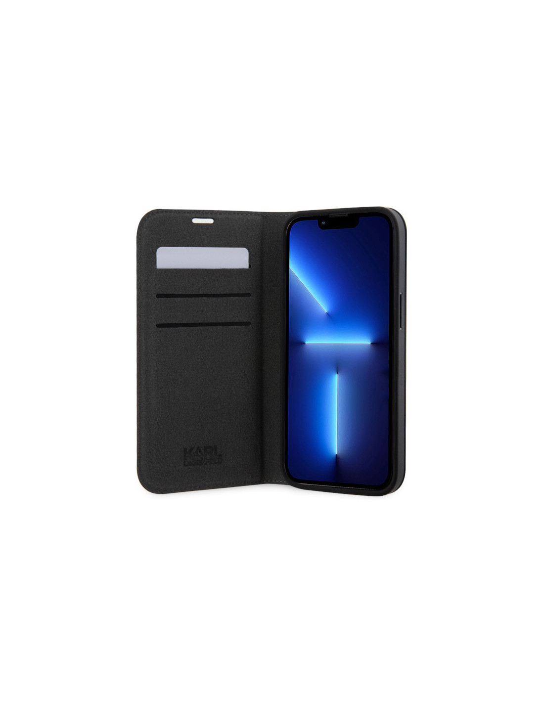Etui Do iPhone 14 Pro Karl Lagerfeld Booktype Saffiano Monogram Srebrny