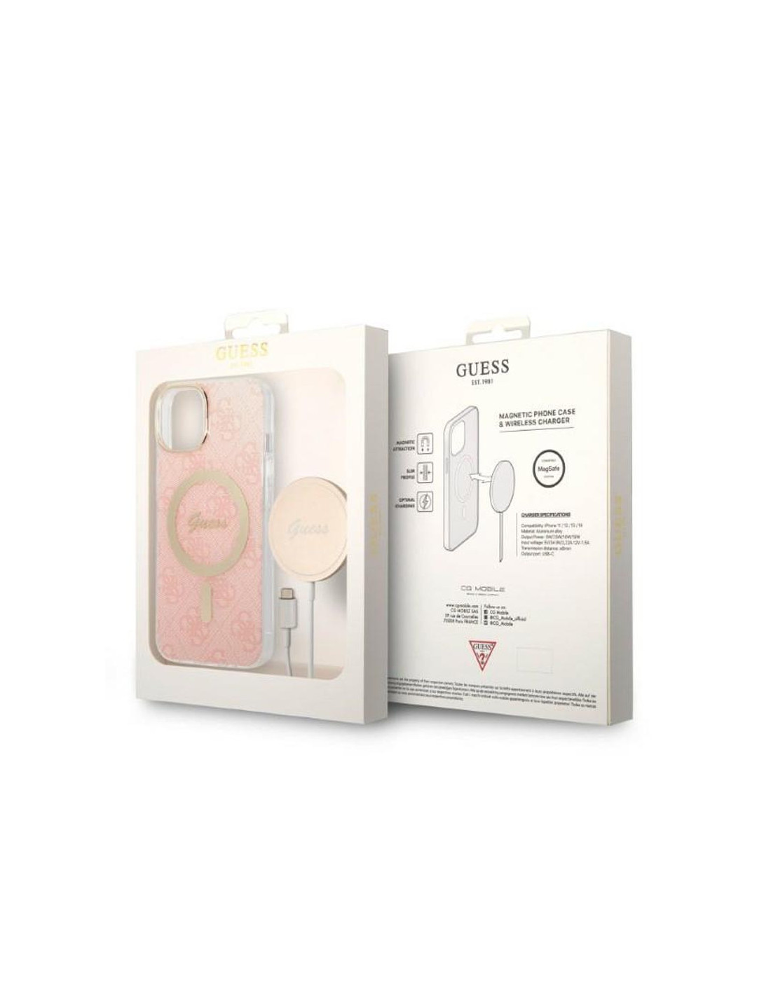 Zestaw Etui + Ładowarka MagSafe Do iPhone 14 Plus Guess Bundle Pack MagSafe 4G Różowy