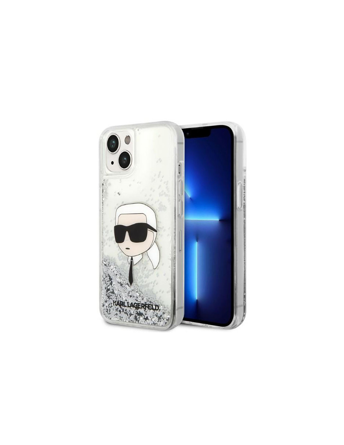 Etui Do iPhone 14 Plus Karl Lagerfeld Liquid Glitter NFT Karl'S Head Srebrny