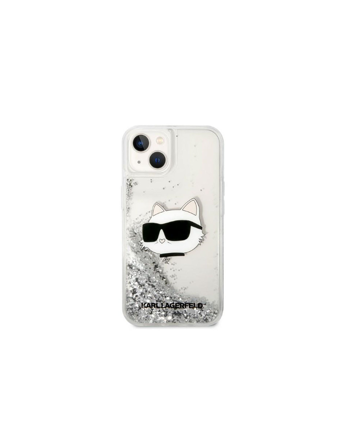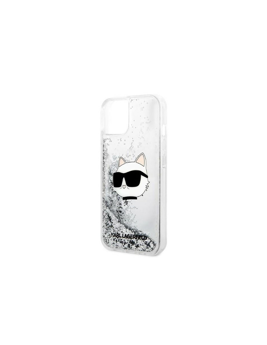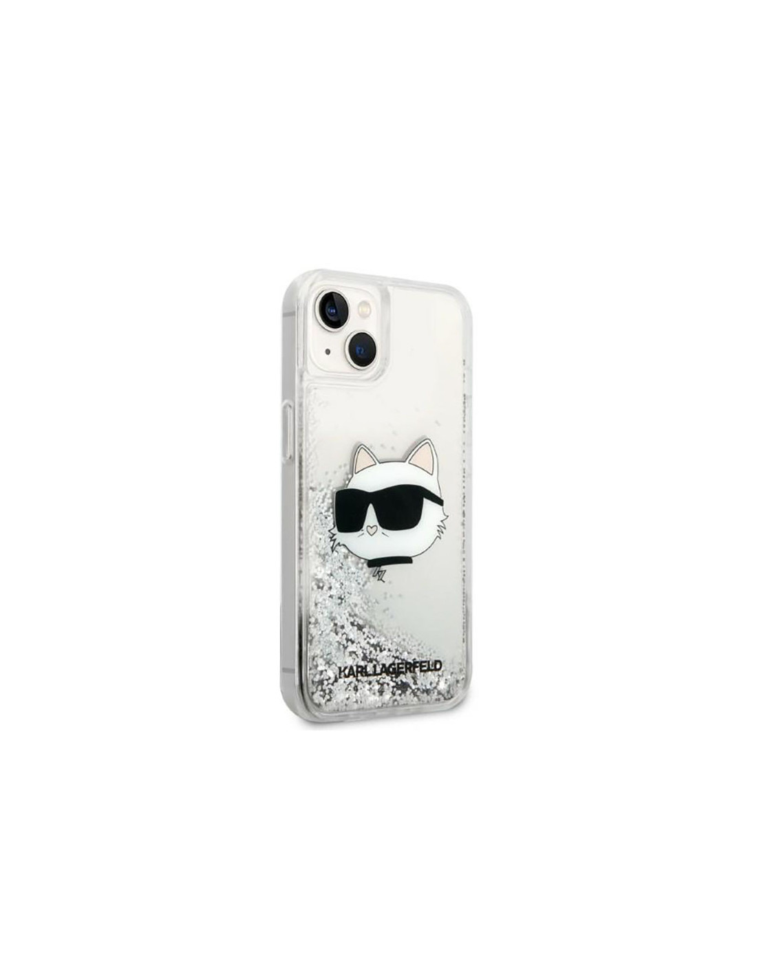 Etui Do iPhone 14 Plus Karl Lagerfeld Liquid Glitter NFT Choupette Head Srebrny