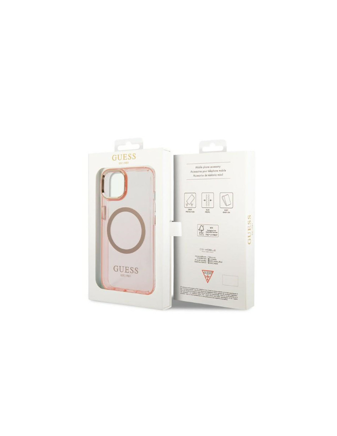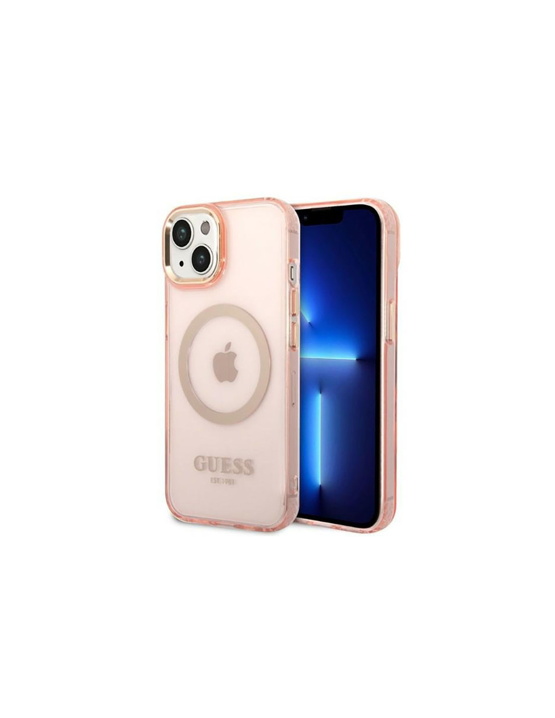 Etui Do iPhone 14 Plus Guess Gold Outline Translucent MagSafe Różowy