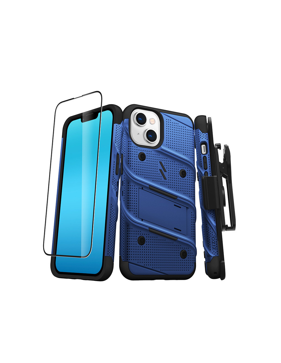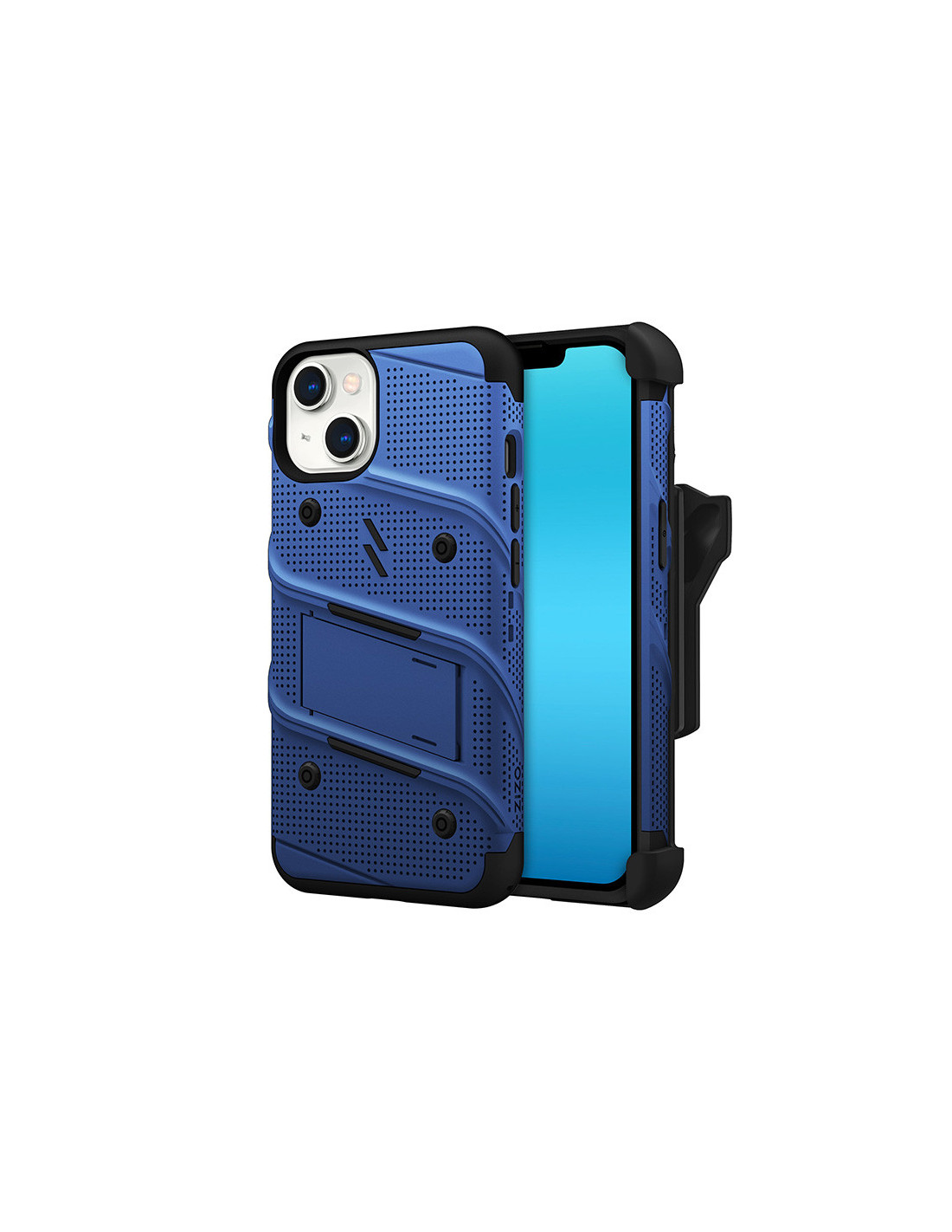 Etui Pancerne Do iPhone 14 Ze Szkłem 9H Na Ekran + Uchwyt Z Podstawką Zizo Bolt Series Niebieski