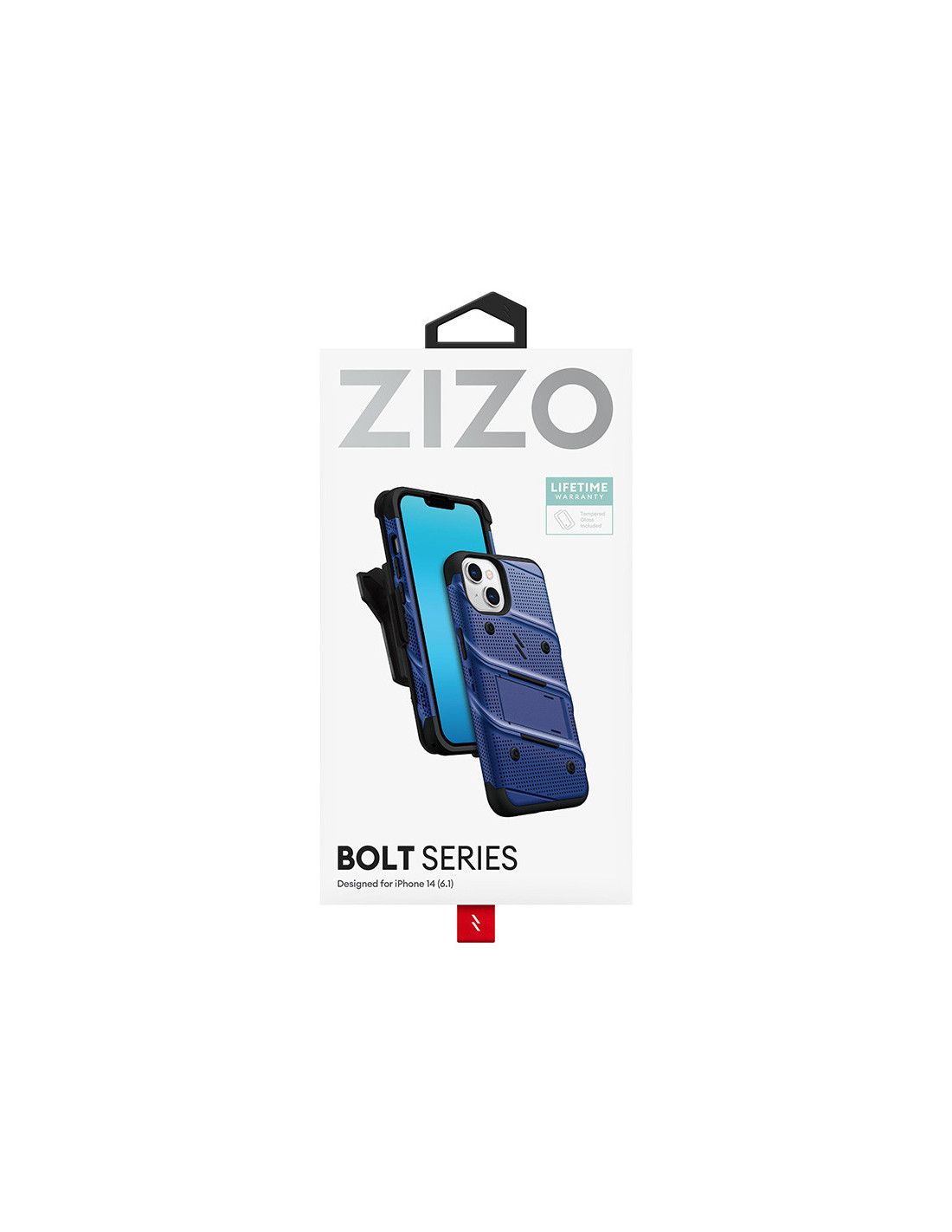 Etui ZIZO BOLT oferuje podwyższony stopień ochrony iPhone'a 14, zachowując jednocześnie jego ergonomiczny kształt i funkcjonalność. Opatentowana konstrukcja (PATENT NO: D795,239) wytrzymuje upadki z wysokości ponad 3,5 metra. Etui ZIZO BOLT Series zdobyło nagrodę CNET Toughest Case Award podczas CES Drop Test 2018 oraz 2019.