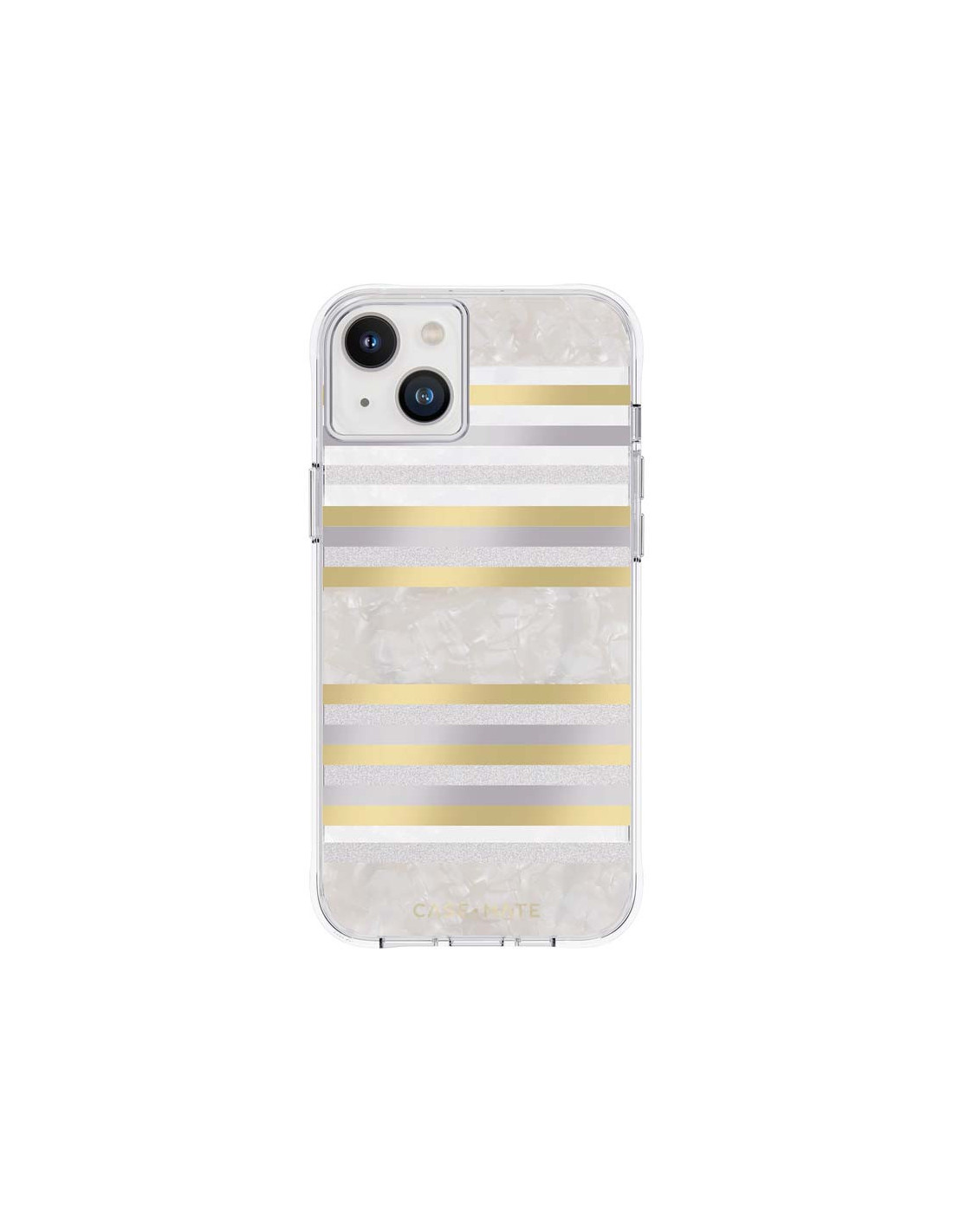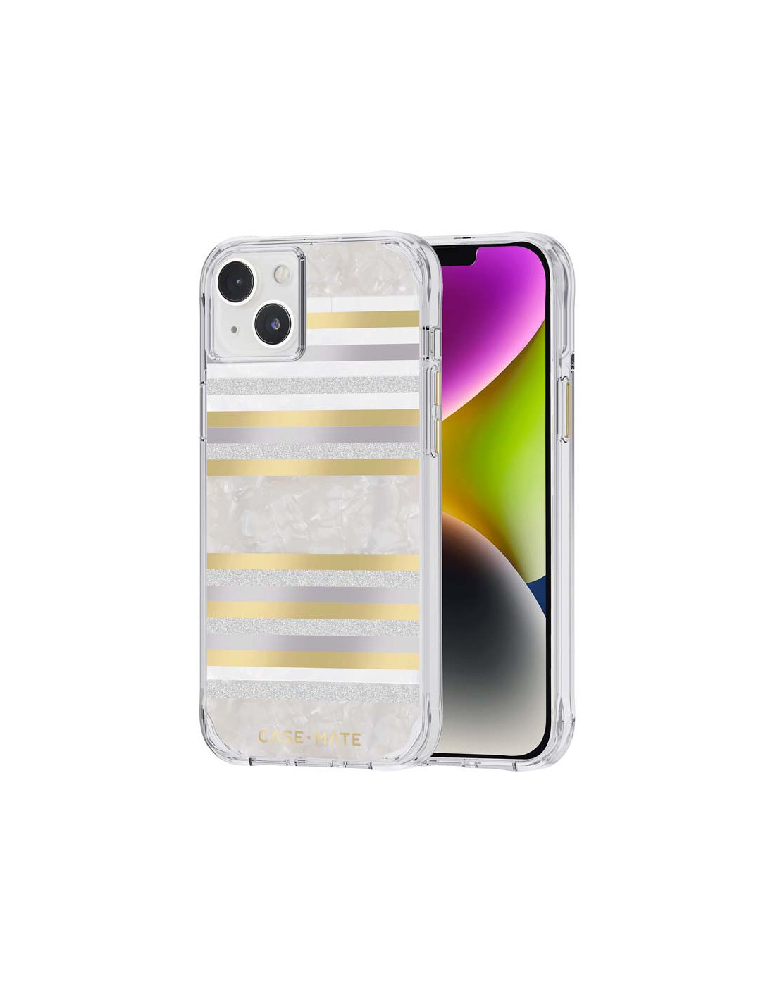 Etui Do iPhone 14 Plus Zdobione Masą Perłową Case-Mate Pearl Stripes MagSafe Biały