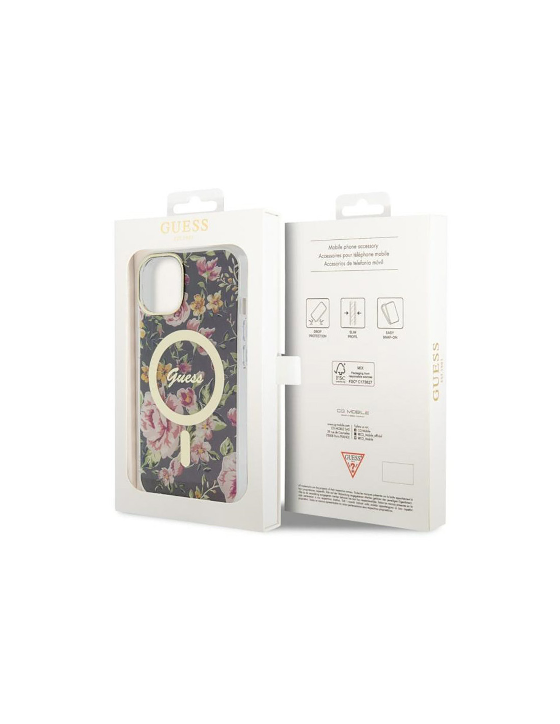 Etui Do iPhone 14 Plus Guess Flower MagSafe Czarny