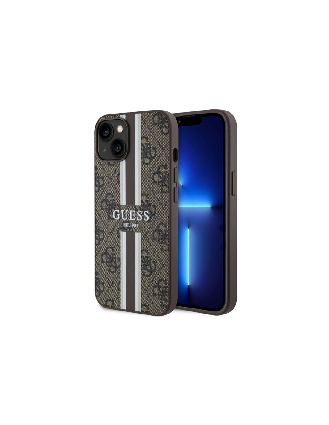 Etui Do iPhone 14 Plus Guess 4G Printed Stripes MagSafe Brązowy