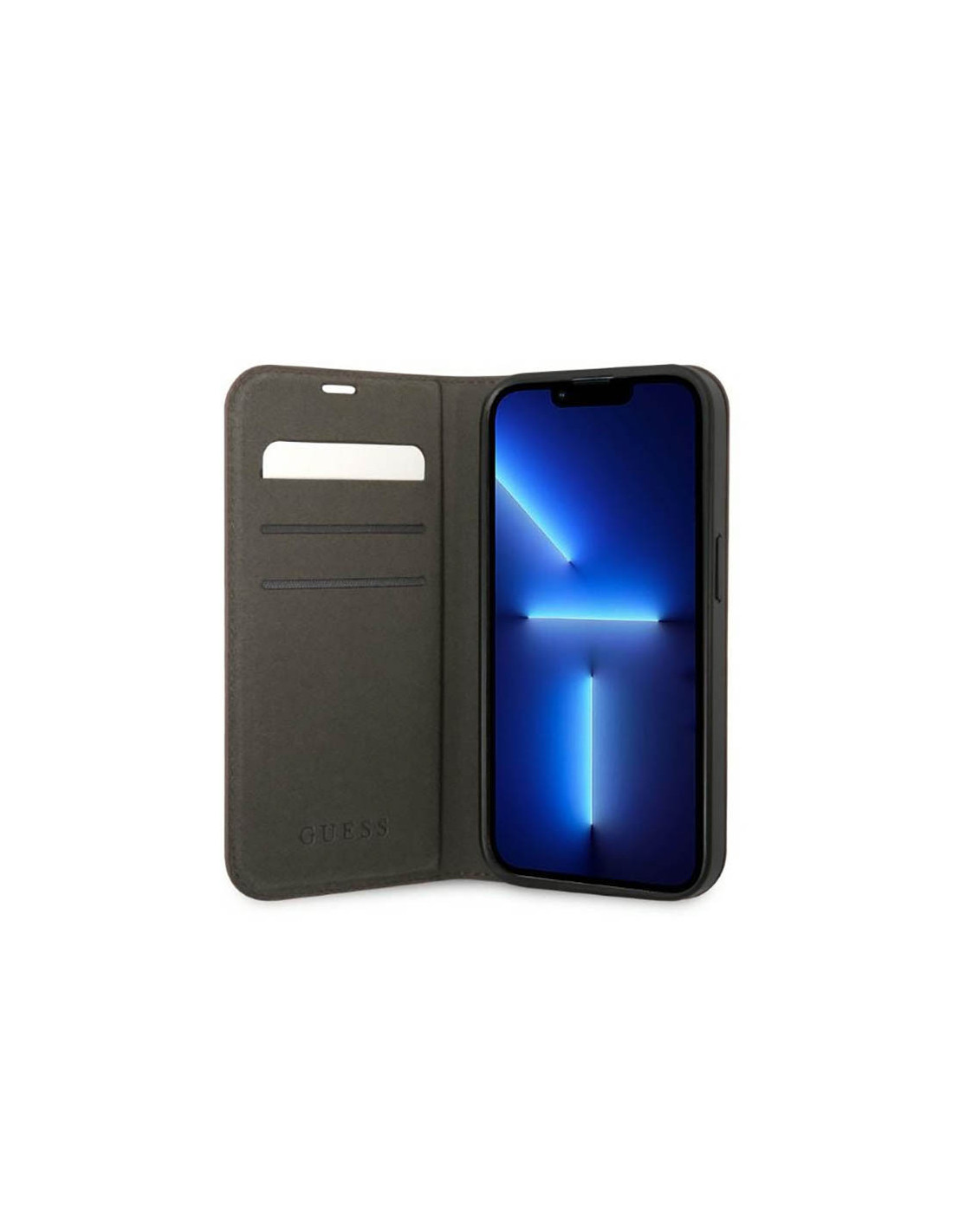 Guess 4G Metal Camera Outline Booktype Case to etui przeznaczono do ochrony całego urządzenia przed porysowaniem lub zadrapaniem. Etui charakteryzuje się drukowanymi emblematami 4G oraz złotym logo Guess, które umiejscowiono na bardzo przyjemnej w dotyku fakturze Saffiano.