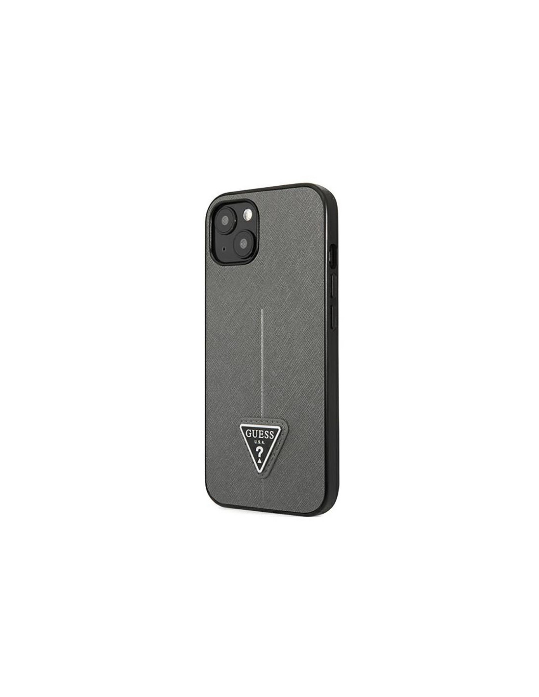 Etui Do iPhone 14 Guess Saffiano Triangle Logo Case Srebrny