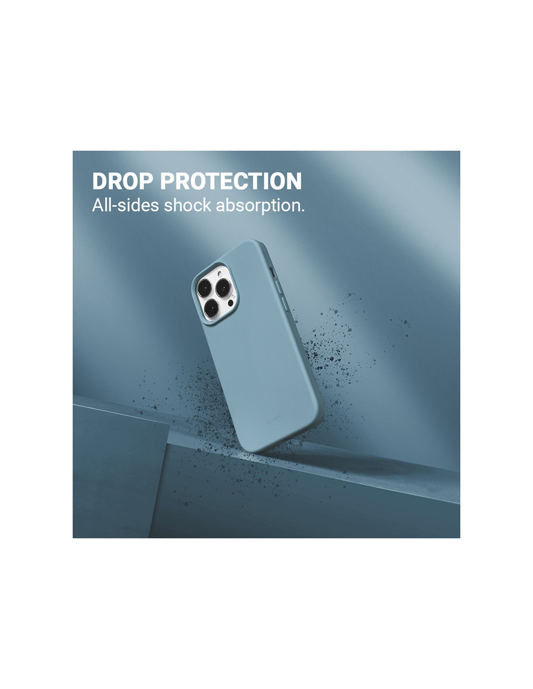 Etui Color Cover wykonane zostało z elastycznego materiału Anti-Shock Liquid Silicone. Podniesiona ramka wokół aparatu zabezpiecza system wystających obiektywów we wszystkich modelach iPhone 13 Pro Max. Wysokiej jakości wyściółka z prawdziwej mikrofibry chroni dodatkowo telefon Apple podczas zakładania i zdejmowania etui, tak aby nie porysować przypadkowo jego obudowy.