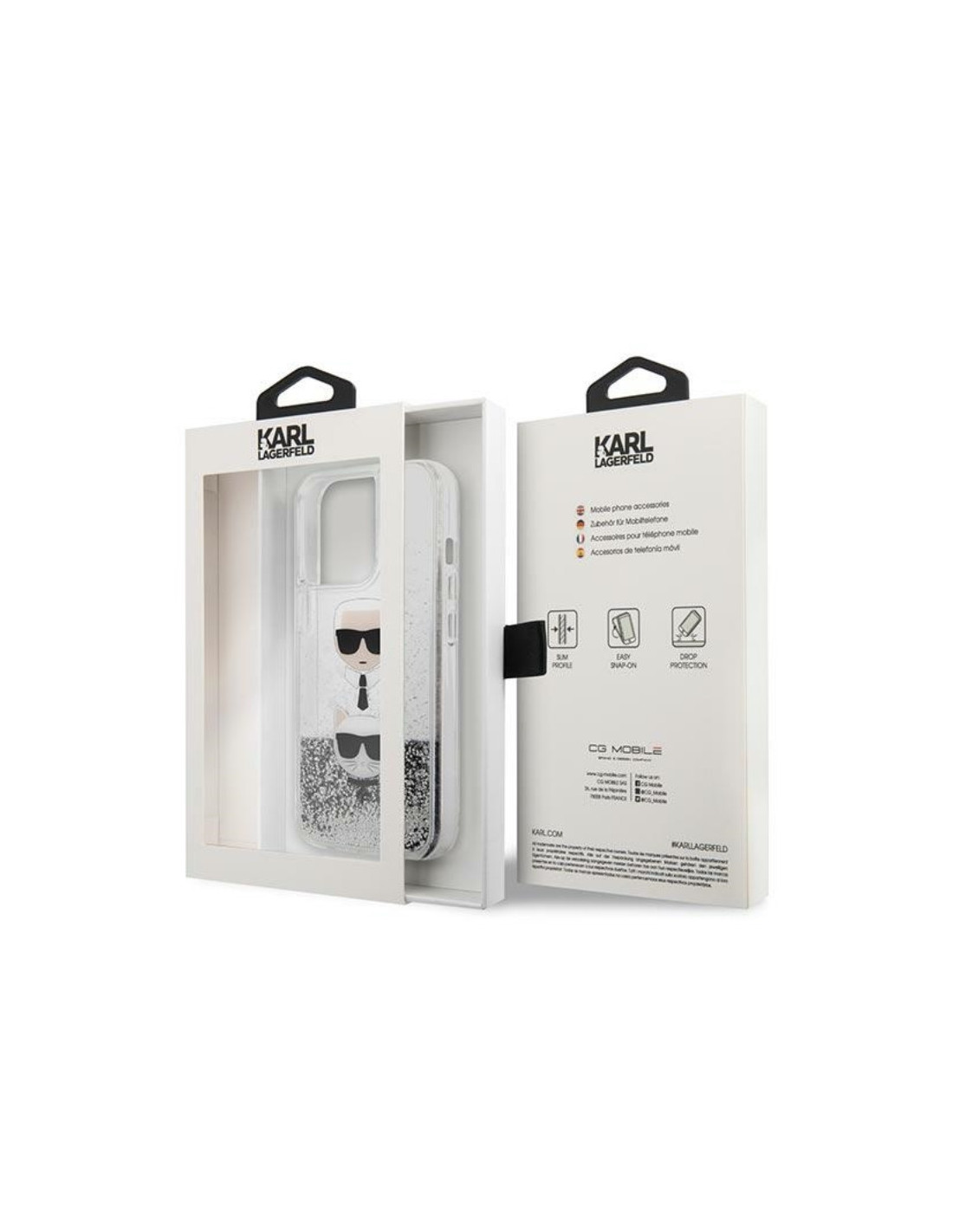 Etui Do iPhone 13 Pro Max Karl Lagerfeld Liquid Glitter Karl & Choupette Head Srebrny