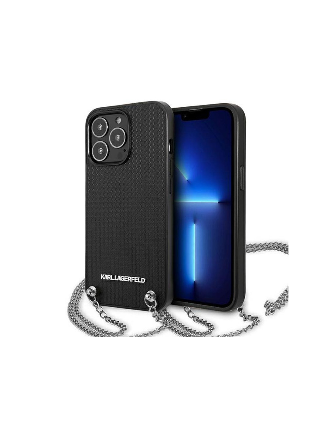 Etui Do iPhone 13 Pro Max Karl Lagerfeld Leather Textured And Chain Czarny