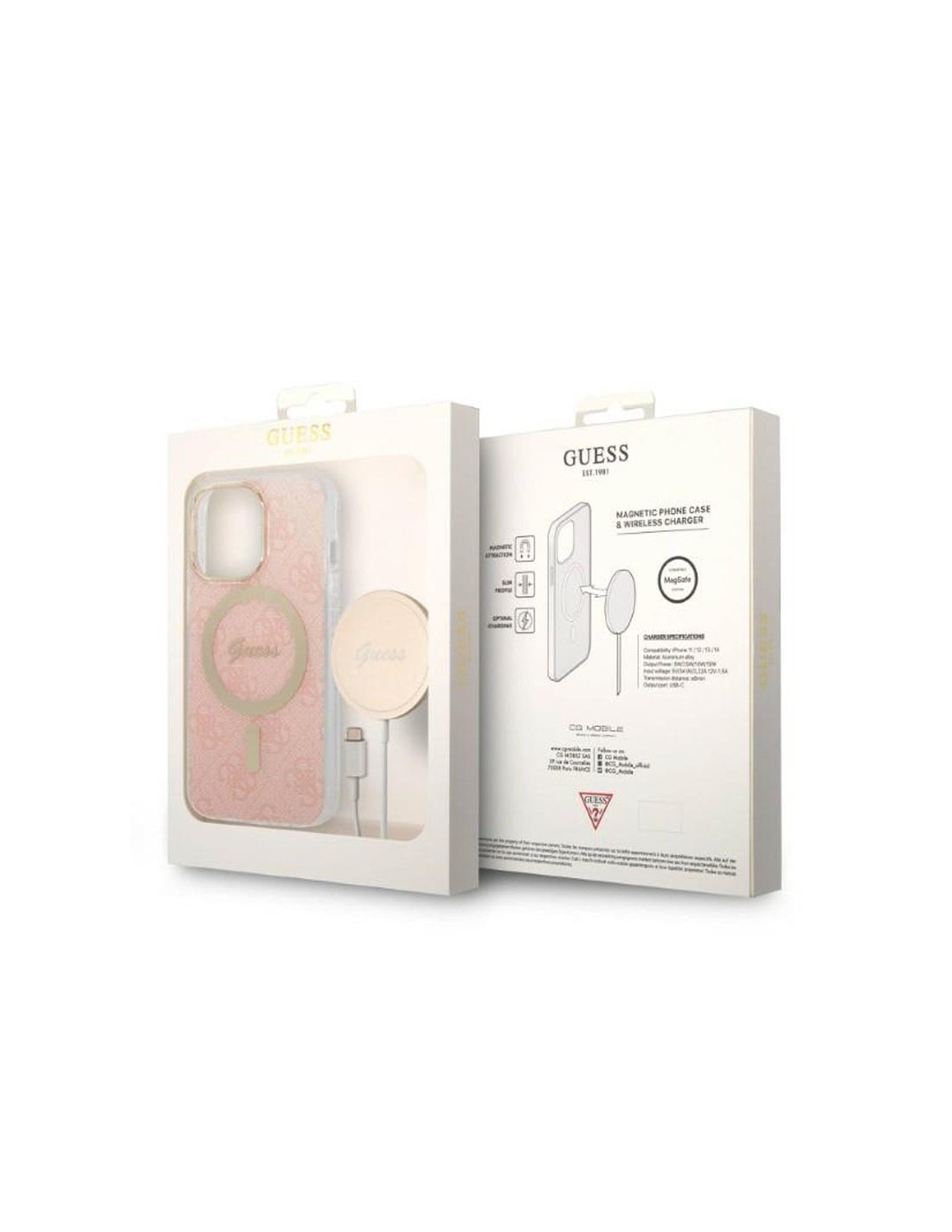 Zestaw Etui + Ładowarka MagSafe Do iPhone 13 Pro Max Guess Bundle Pack MagSafe 4G Różowy