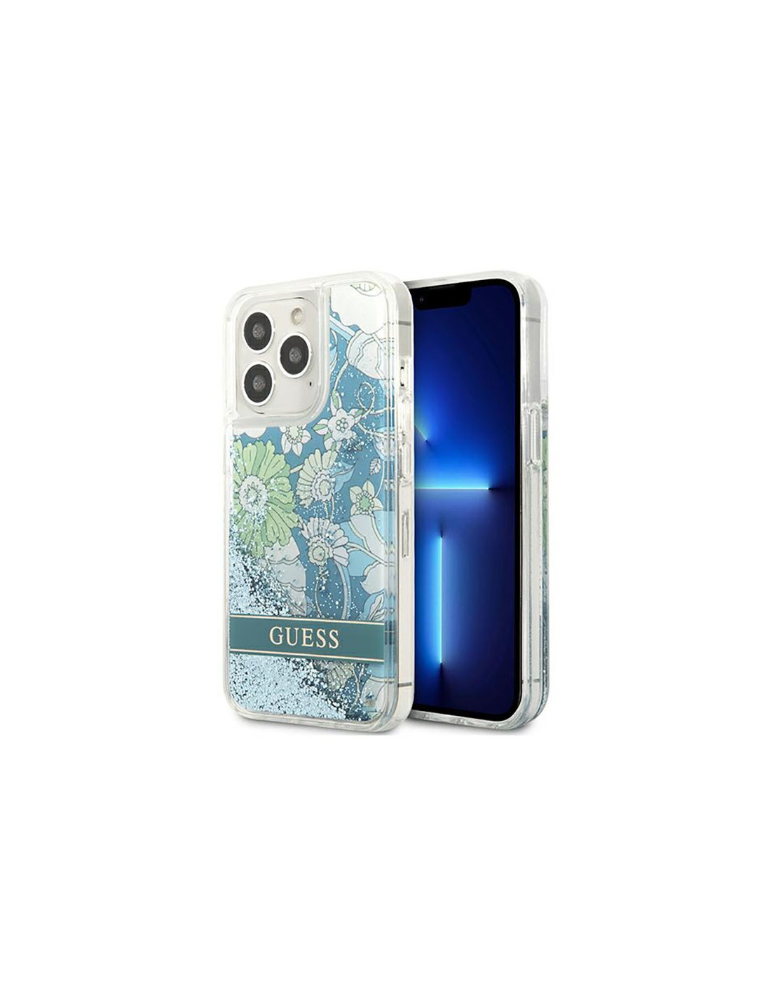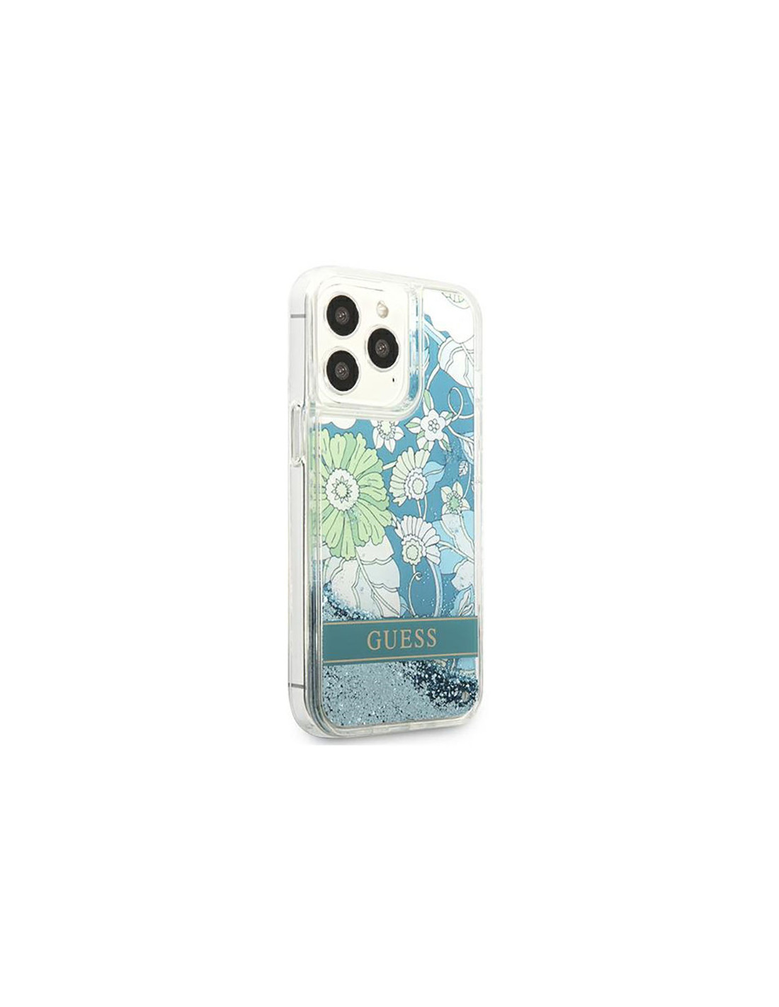 Etui Do iPhone 13 Pro Guess Liquid Glitter Flower Niebieski