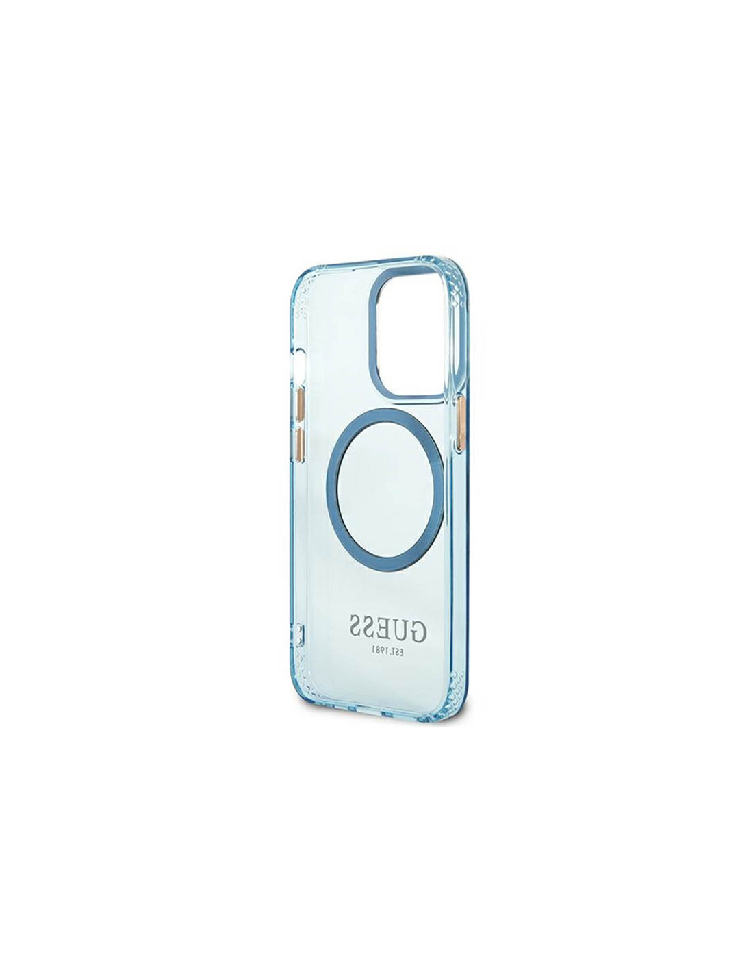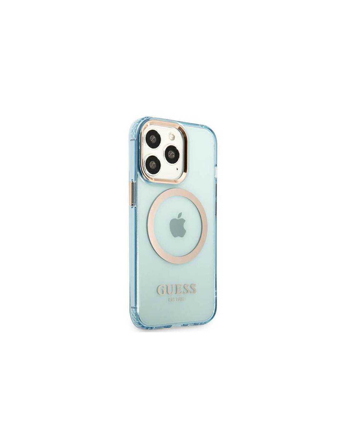Etui Do iPhone 13 Pro Guess Gold Outline Translucent MagSafe Niebieski