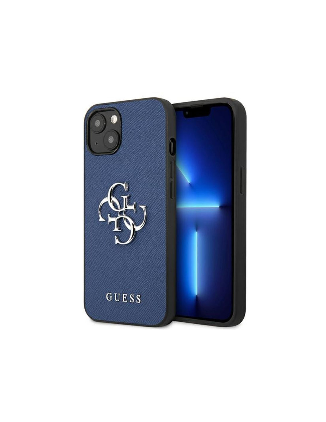 Etui Do iPhone 13 Mini Guess Saffiano 4G Big Silver Logo Niebieski