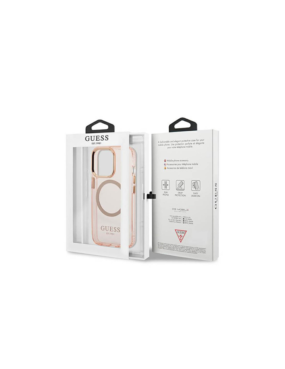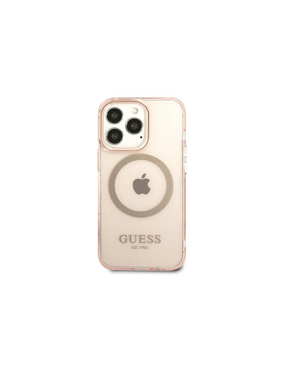 Etui Do iPhone 13 Pro Guess Gold Outline Translucent MagSafe Różowy