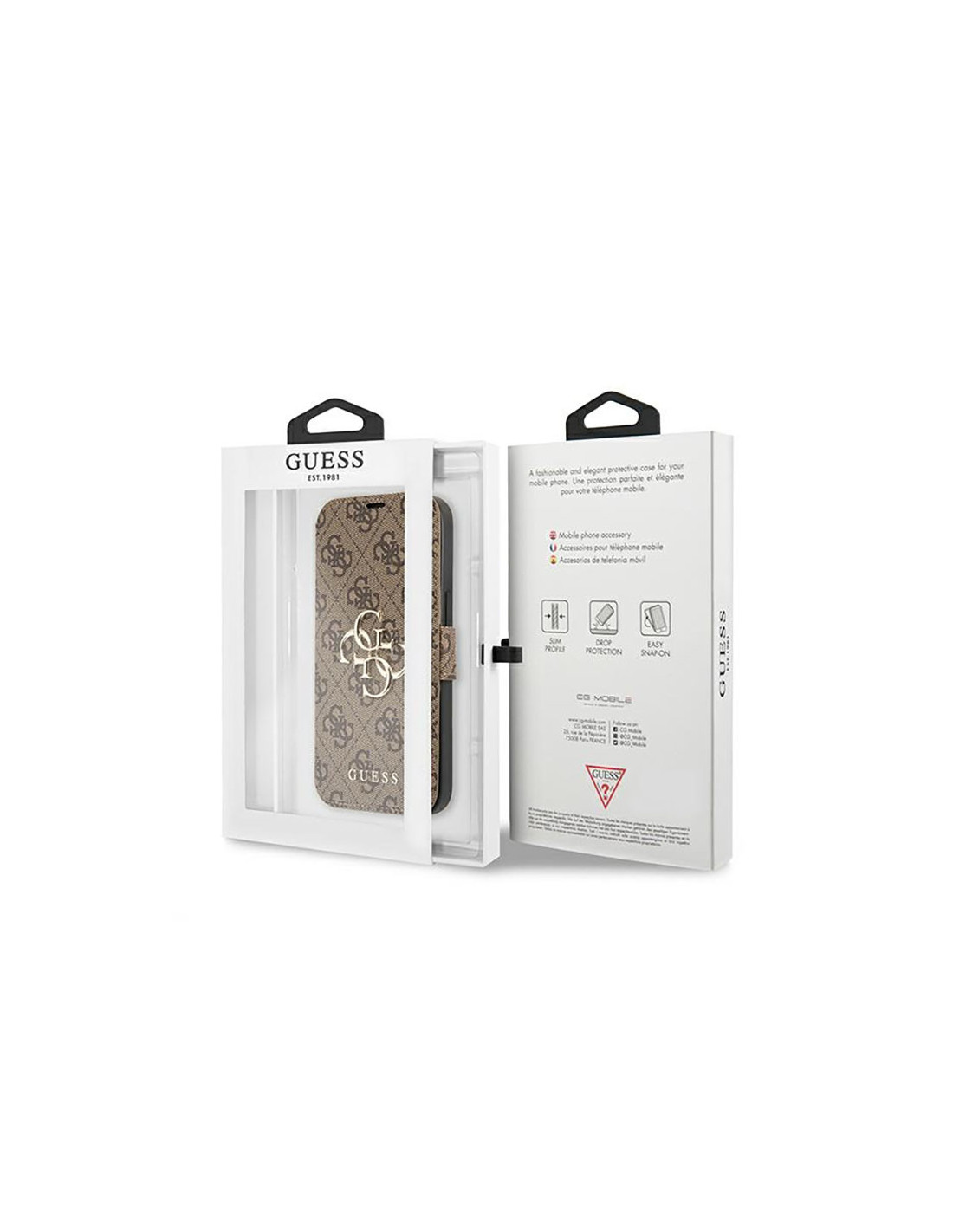 Guess 4G Big Metal Logo charakteryzuje się jednym z bardziej znanych motywów używanych przez Guess. Cały panel etui pokryto emblematami 4G, które umiejscowiono na bardzo przyjemnej w dotyku fakturze saffiano. Duże, złote logo Guess 4G na środku etui i dodatkowe mniejsze na dole. Połączenie tych elementów sprawia, że całość prezentuje się bardzo elegancko.