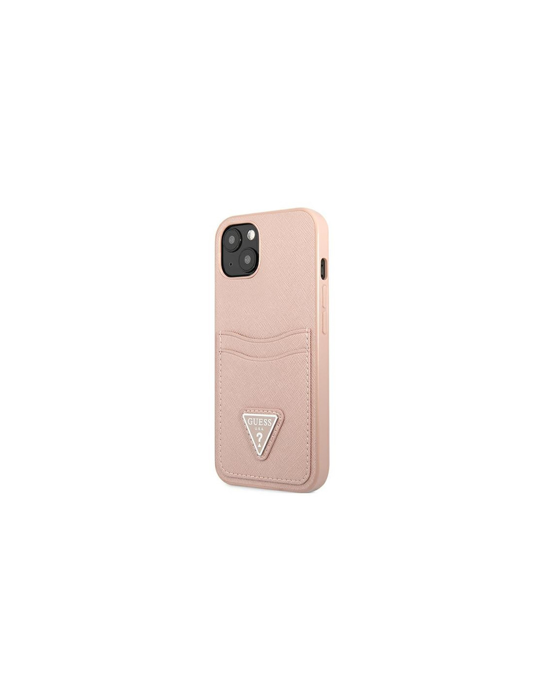 Etui Do iPhone 13 Mini Guess Saffiano Double Card Triangle Różowy