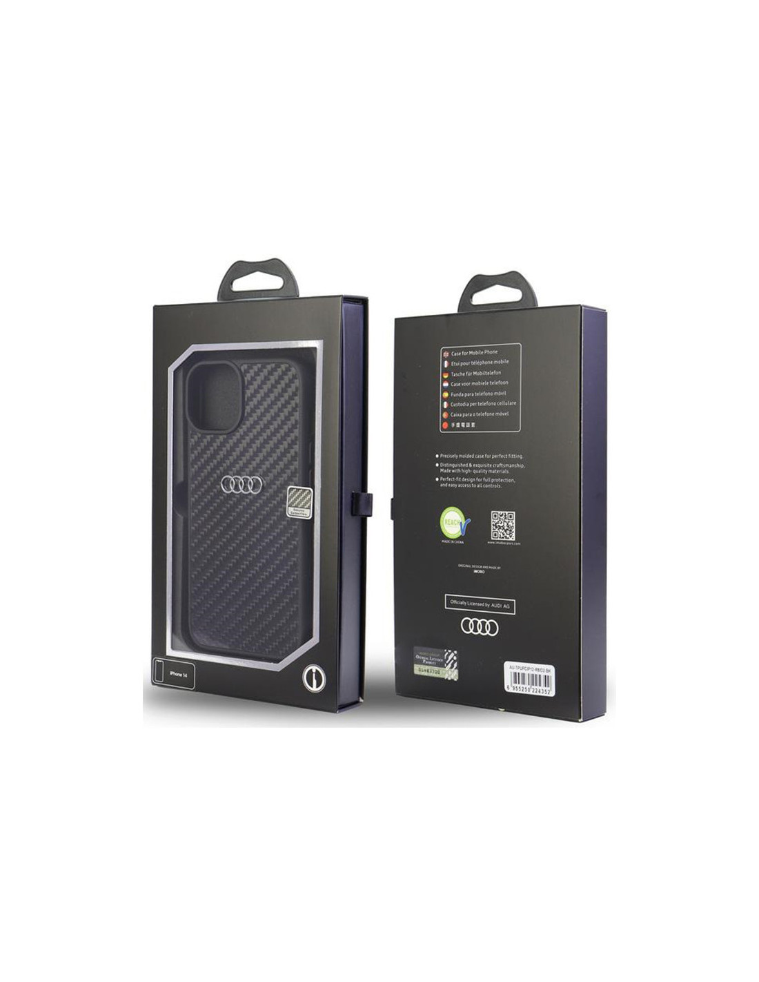 Etui serii Audi Carbon Fiber wykonano w trosce o najmniejszy szczegół oraz perfekcyjne dopasowanie do smartfona. Powłoka wykonana z termopoliuretanu, który zapewnia ochronę i łatwy montaż. Etui zostało ozdobione wzorem tkaniny węglowej, która nadaje nowoczesnego i luksusowego wyglądu. Na środku znajduje się logo Audi.