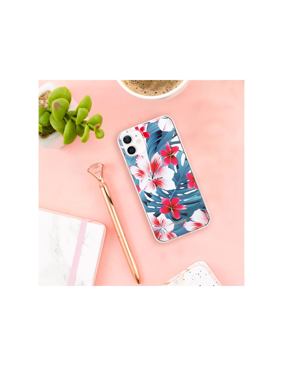 Flower Case firmy Crong to modne i eleganckie etui ochronne z kwiatowymi motywami na pleckach. Atrakcyjny nadruk z dyskretnym logo w złotym kolorze zdobi cały tył telefonu. Elastyczny materiał dopasowuje się do obudowy i zabezpiecza wszystkie krawędzie ekranu dotykowego. Specjalna struktura wewnątrz etui zapobiega przyklejaniu się etui do nagrzanej obudowy smartfona.