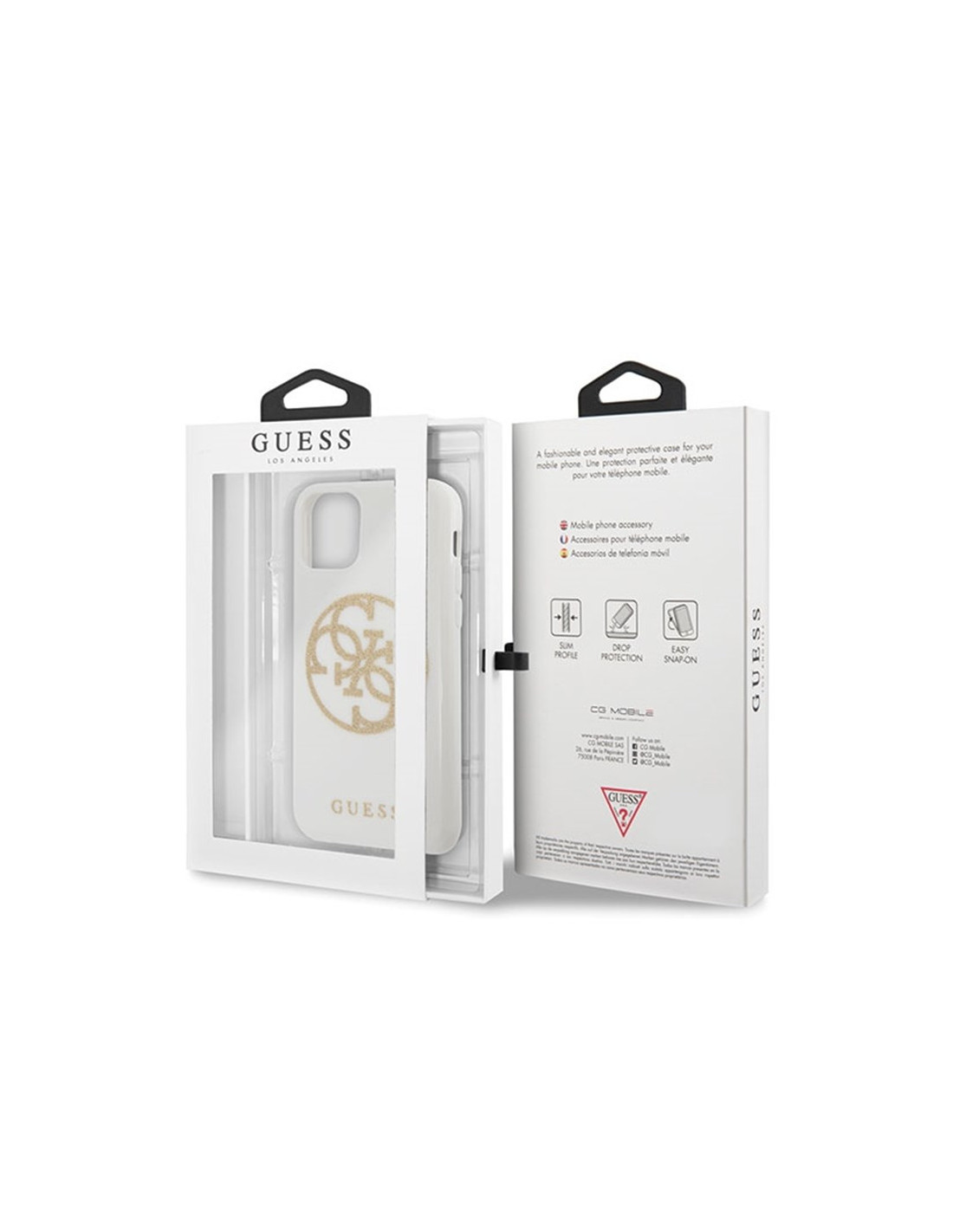 Guess Circle Glitter 4G to etui przeznaczono do ochrony przed porysowaniem urządzenia. Wykonane z wytrzymałego TPU. Smartfon bezpiecznie spoczywa w perfekcyjnie wykonanej konstrukcji, która osłania go z tyłu oraz po bokach w żaden sposób nie psując estetyki urządzenia. Na środku etui umieszczono duże, okrągłe logo w kolorze złotym. Etui zapewnia dostęp do wszystkich klawiszy funkcyjnych, gniazd i portów telefonu nie ograniczając jego funkcjonalności, dzięki czemu można w pełni korzystać ze swojego smartfona.