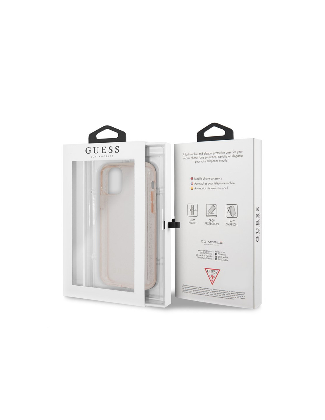 Guess Glitter Case to wysokiej jakości, eleganckie etui, zapewniające ochronę przed porysowaniem i uszkodzeniami urządzenia. Idealnie dopasowane sprawia, ze iPhone jest perfekcyjnie chroniony a dostęp do wszystkich klawiszy funkcyjnych, gniazd i portów telefonu nie ograniczając jego funkcjonalności. Wykonane z wysokiej jakości materiałów. Przezroczysta konstrukcja ozdobiona została delikatnym brokatem oraz złotym logo Guess. Oryginalny desing sprawia, że etui jest świetnym modnym dodatkiem.