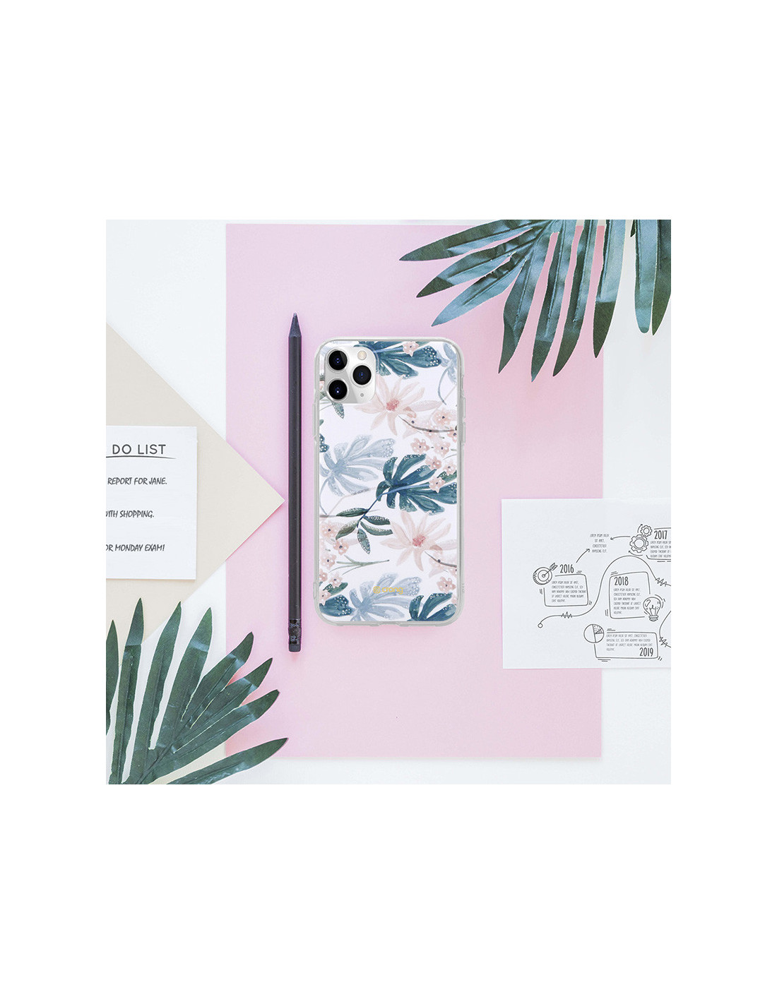Flower Case firmy Crong dla iPhone 11 to modne i eleganckie etui ochronne z kwiatowymi motywami na pleckach. Atrakcyjny nadruk z dyskretnym logo w złotym kolorze zdobi cały tył telefonu. Elastyczny materiał dopasowuje się do obudowy i zabezpiecza wszystkie krawędzie ekranu dotykowego. Specjalna struktura wewnątrz etui zapobiega przyklejaniu się etui do nagrzanej obudowy smartfona.